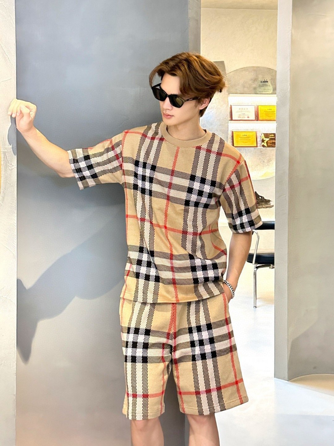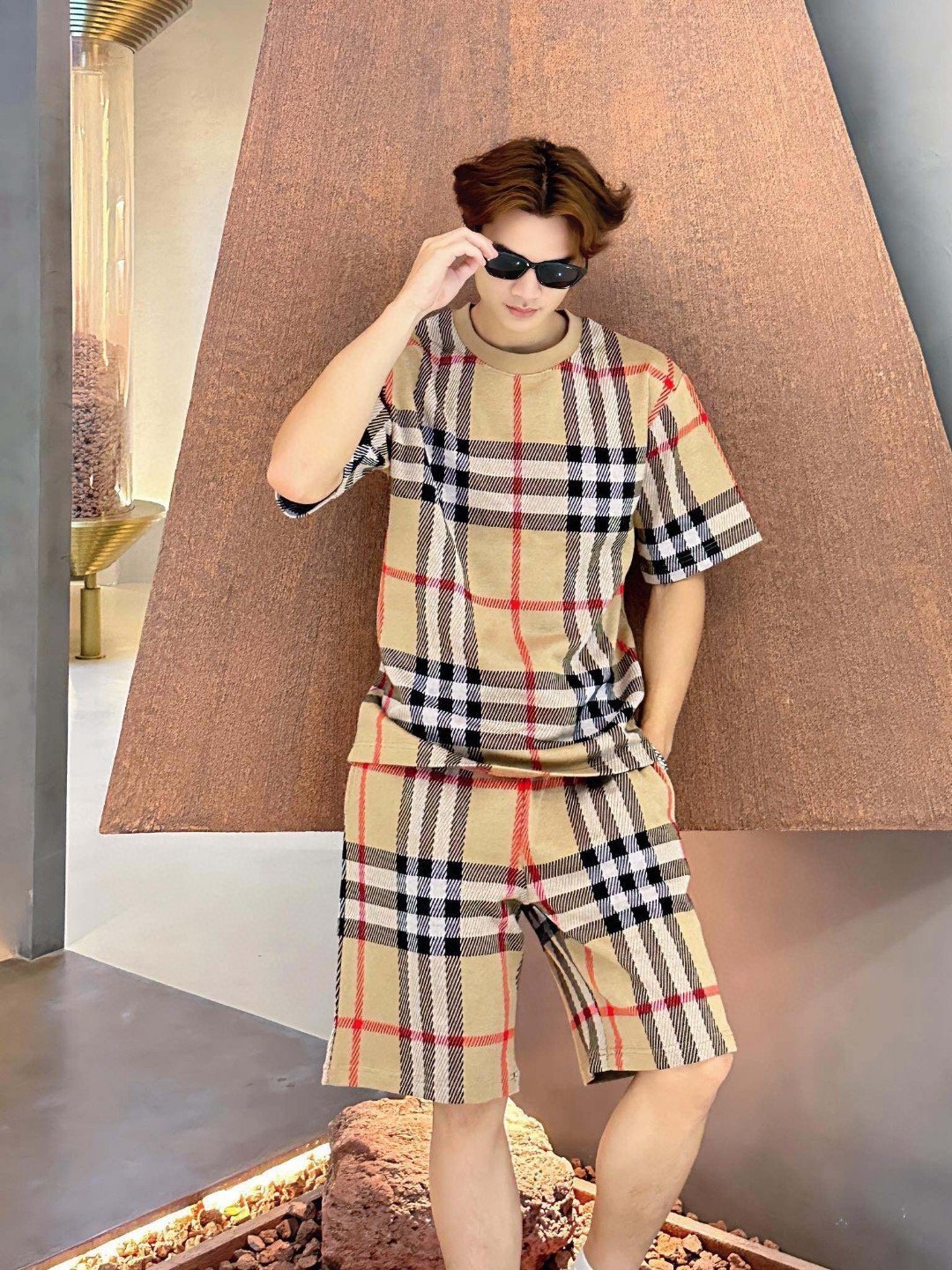 The 24ss Plaid Knit Short features a plaid pattern. soft knit fabric. elastic waistband. and functional side pockets. Ideal for everyday wear.