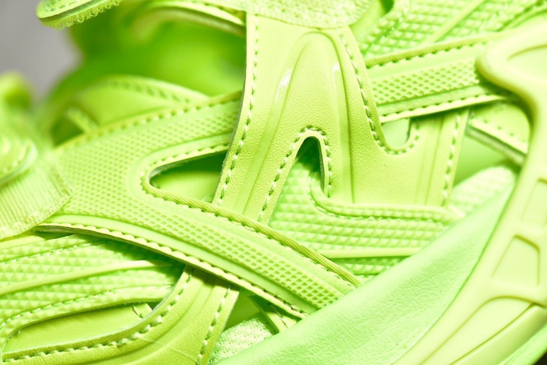 The Balenciaga Track Sandals Green feature a vibrant green design with adjustable multi-straps and a contoured footbed for comfort. Includes durable synthetic materials. layered sole. and chunky rubber outsole. Perfect for everyday casual wear.