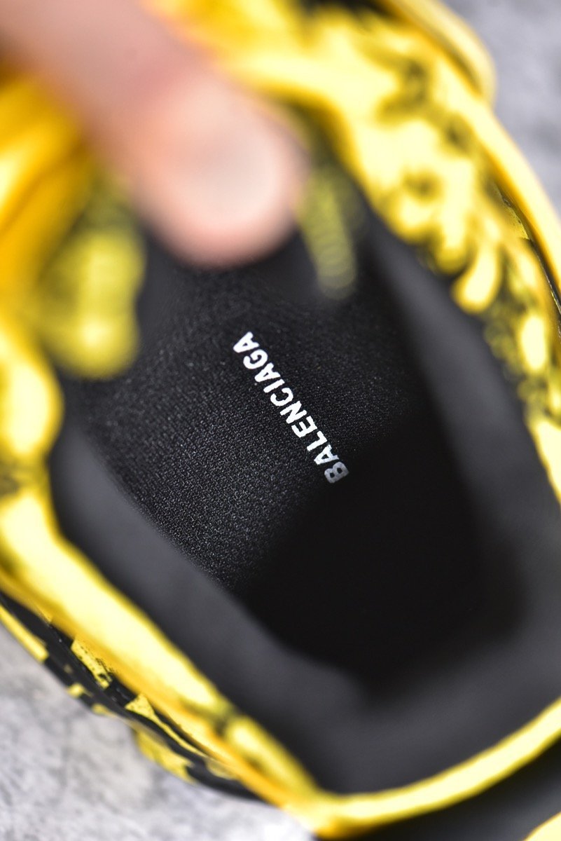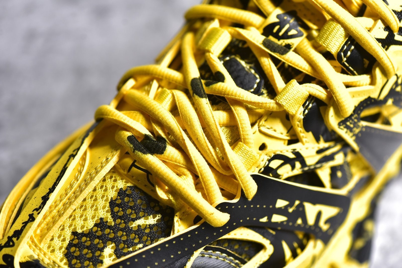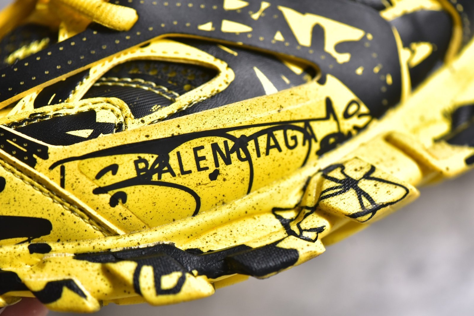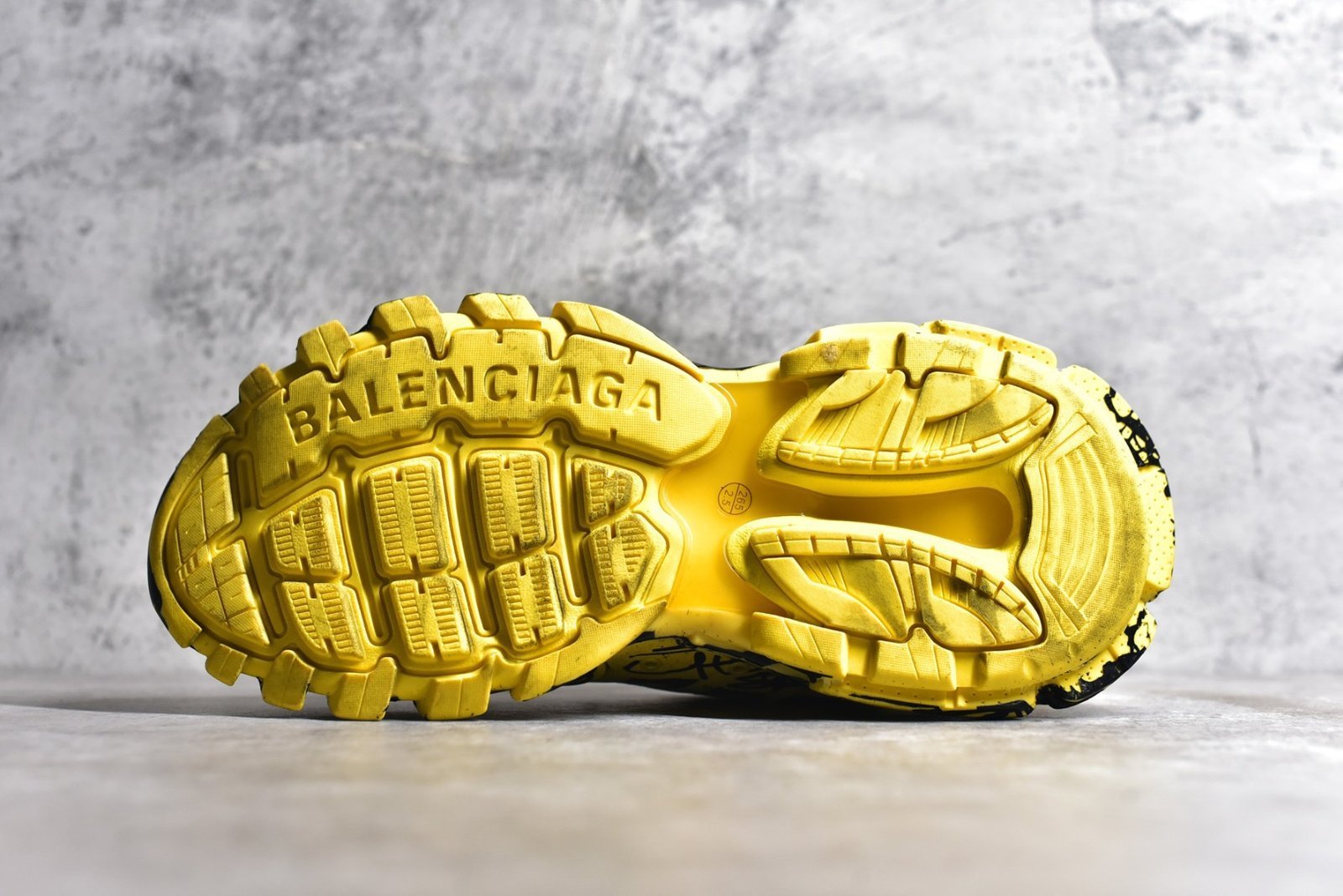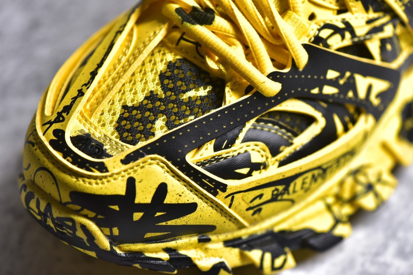 The Balenciaga Track Sneaker Graffiti offers a bold fusion of street art and high-performance design. These sneakers stand out with their graffiti-style graphics. adding a dynamic and artistic touch to the multi-layered upper. Crafted from a mix of mesh. leather. and synthetic materials. these sneakers ensure durability. breathability. and a lightweight feel. The intricate paneling and overlays create a textured. eye-catching look. while the padded collar and tongue enhance comfort. The lace-up closure provides a secure fit. and reflective accents improve visibility. The exaggerated. chunky sole delivers superior cushioning and support. making these sneakers ideal for various activities. Subtle Balenciaga branding on the side and tongue completes the edgy. contemporary aesthetic. Perfect for those who appreciate a blend of artistic expression and modern sneaker design. the Balenciaga Track Sneaker Graffiti is a statement piece for any footwear collection.