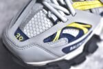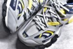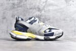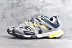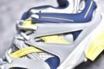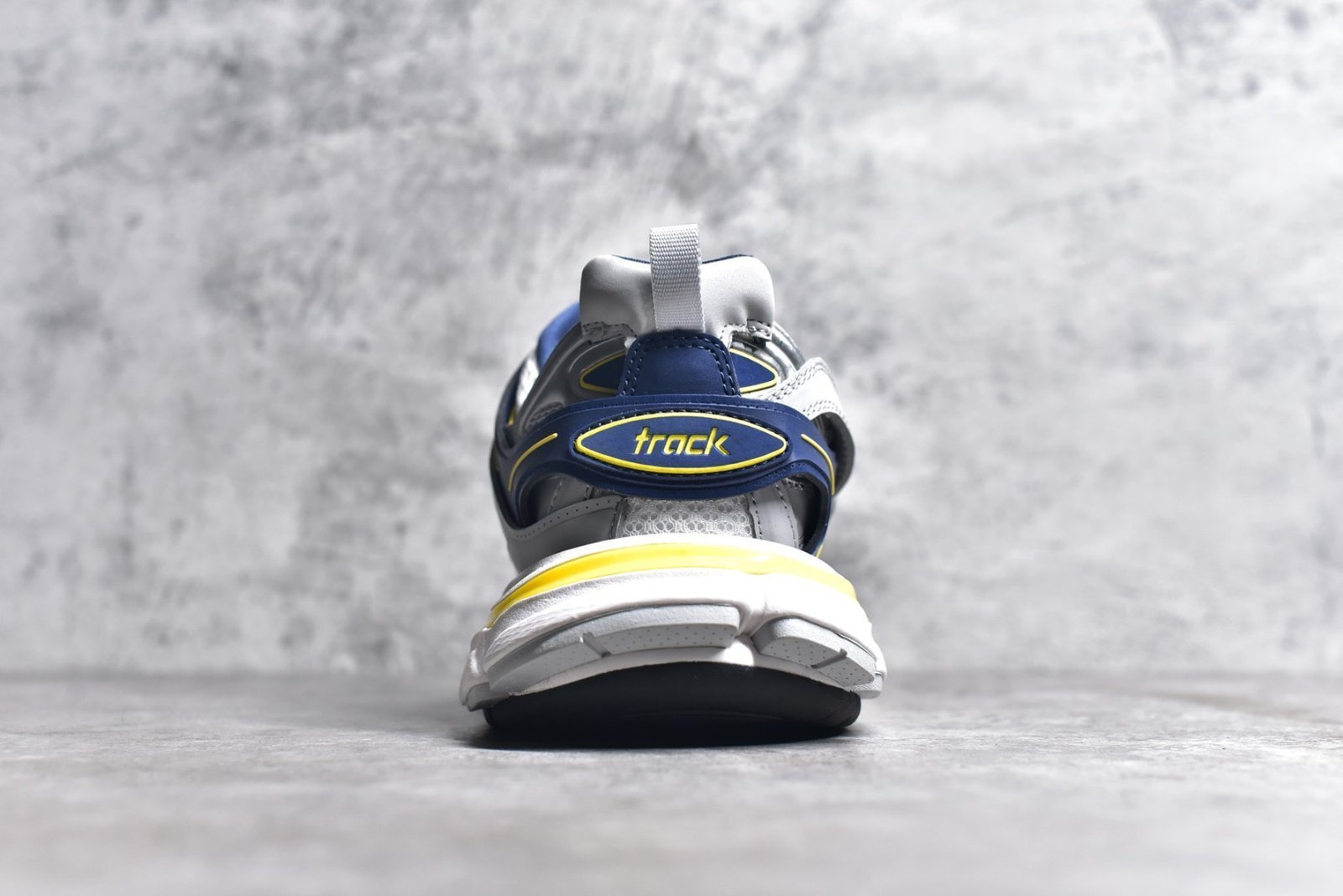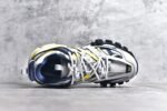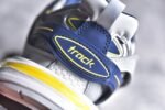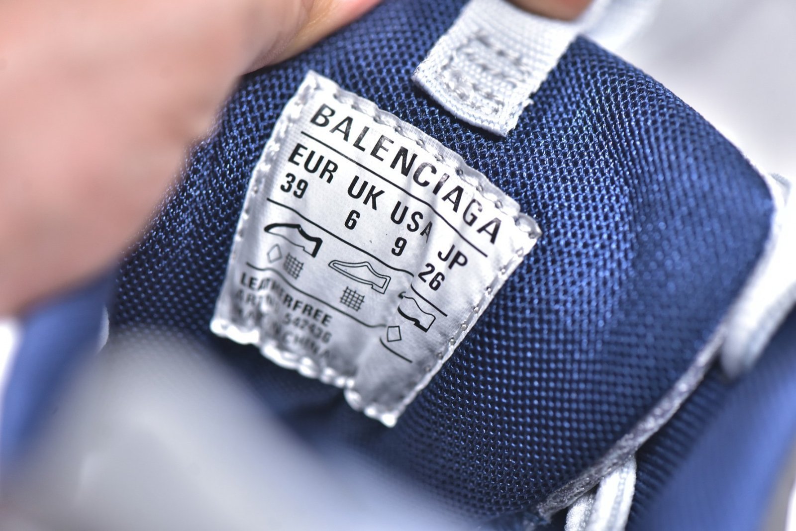 The Balenciaga Track Sneaker in White Navy features a dynamic color combination and a mix of mesh and synthetic materials. with a chunky sole for comfort and traction. Perfect for those seeking style and performance in their footwear.