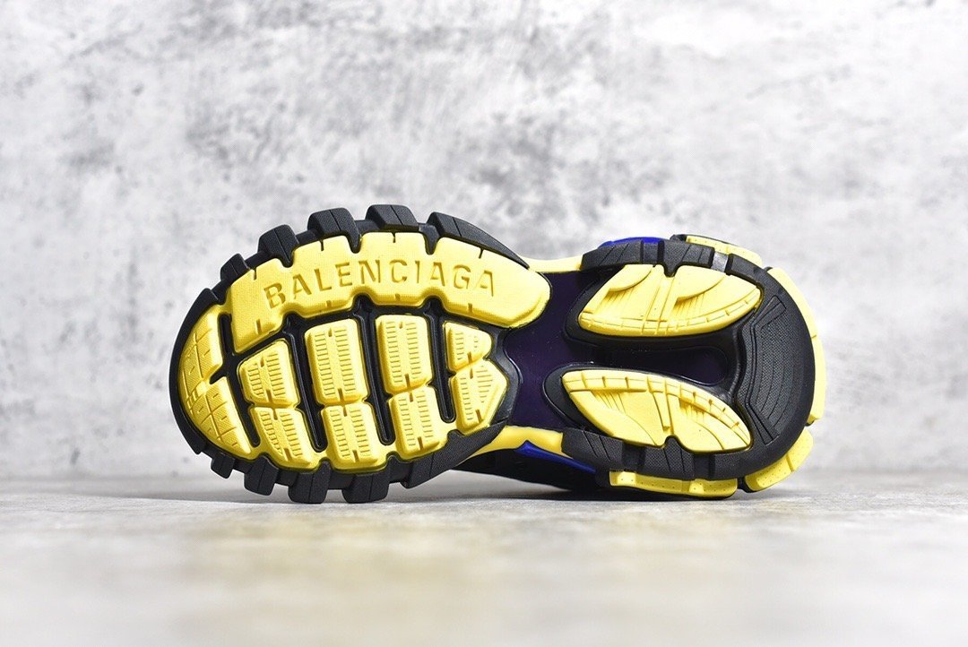 The Balenciaga Track Trainer Black Yellow features a bold black and yellow design with a multi-panel upper for a modern look. Includes breathable mesh and synthetic materials. layered sole. padded tongue and collar. and chunky rubber outsole. Perfect for sneaker enthusiasts.