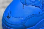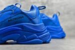 The Balenciaga Triple S Allover Logo Blue sneakers feature a vibrant blue all-over logo print with premium materials and a triple-stacked sole for comfort and stability. Includes embroidered branding for a luxurious touch. Perfect for sneaker enthusiasts seeking bold. modern style.