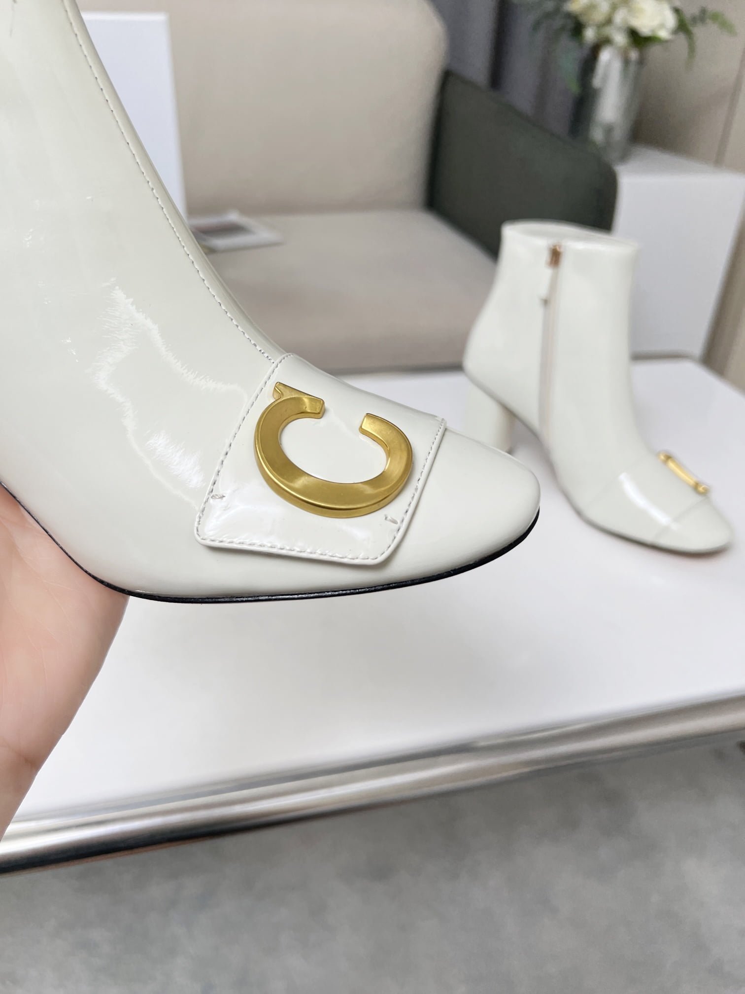 Dior 2023 autumn and winter new nude boots. the outside of the upper whole piece of soft patent leather constantly open. simple atmosphere. 🌹🌹🌹 with brand classic vintage hardware buckle. Patent leather mirror upper with 7.5cm heel height. ultra leg length. Can let you second change no problem temperament goddess 👄💗👄 Yang Jing color later