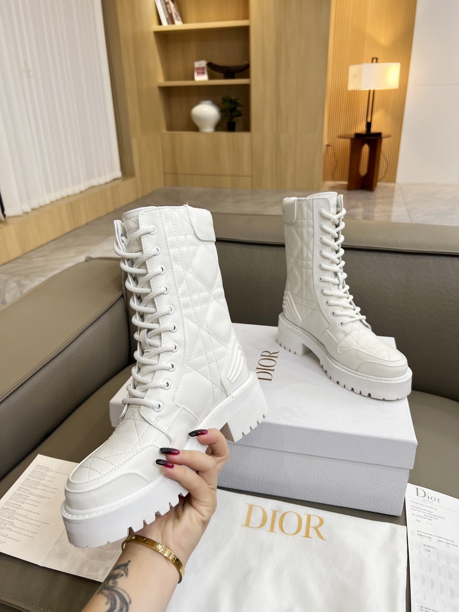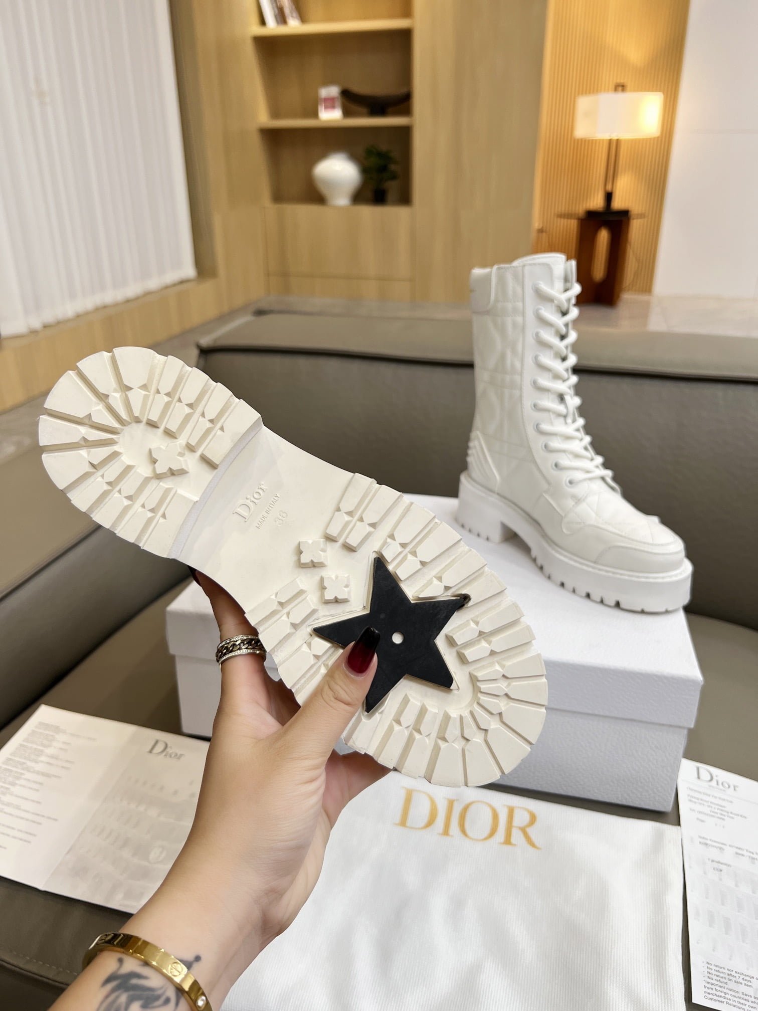 Martin boots. the original purchase and development of gold “Christian Dior” to highlight the brand charm. ▪️ fabric: full-grain calf leather inner: imported sheepskin. color: black and white. size: 35-41