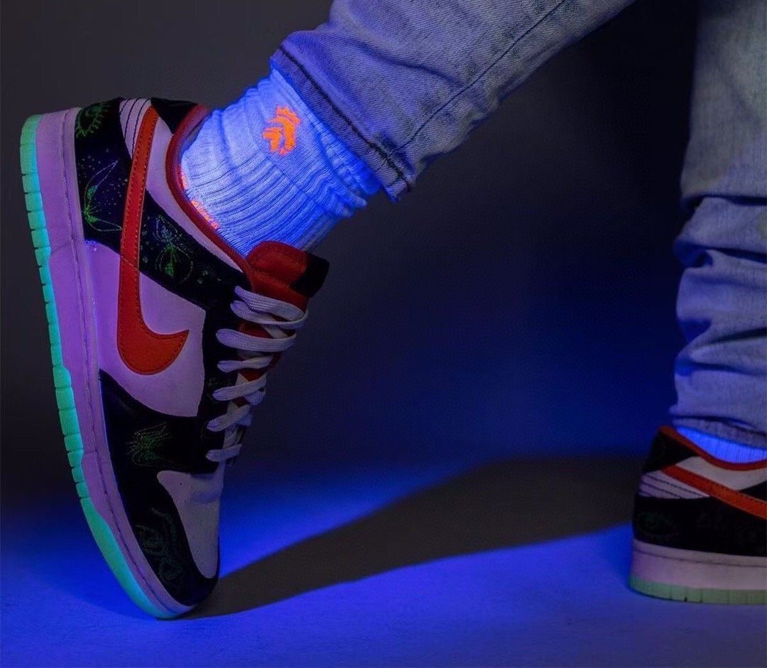 - Design Elements: Features Halloween-themed details. including glow-in-the-dark elements and spider web graphics on the overlays. The shoe includes orange laces. a translucent outsole. and Halloween-themed insoles with a unique design.