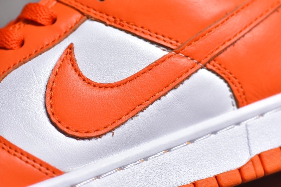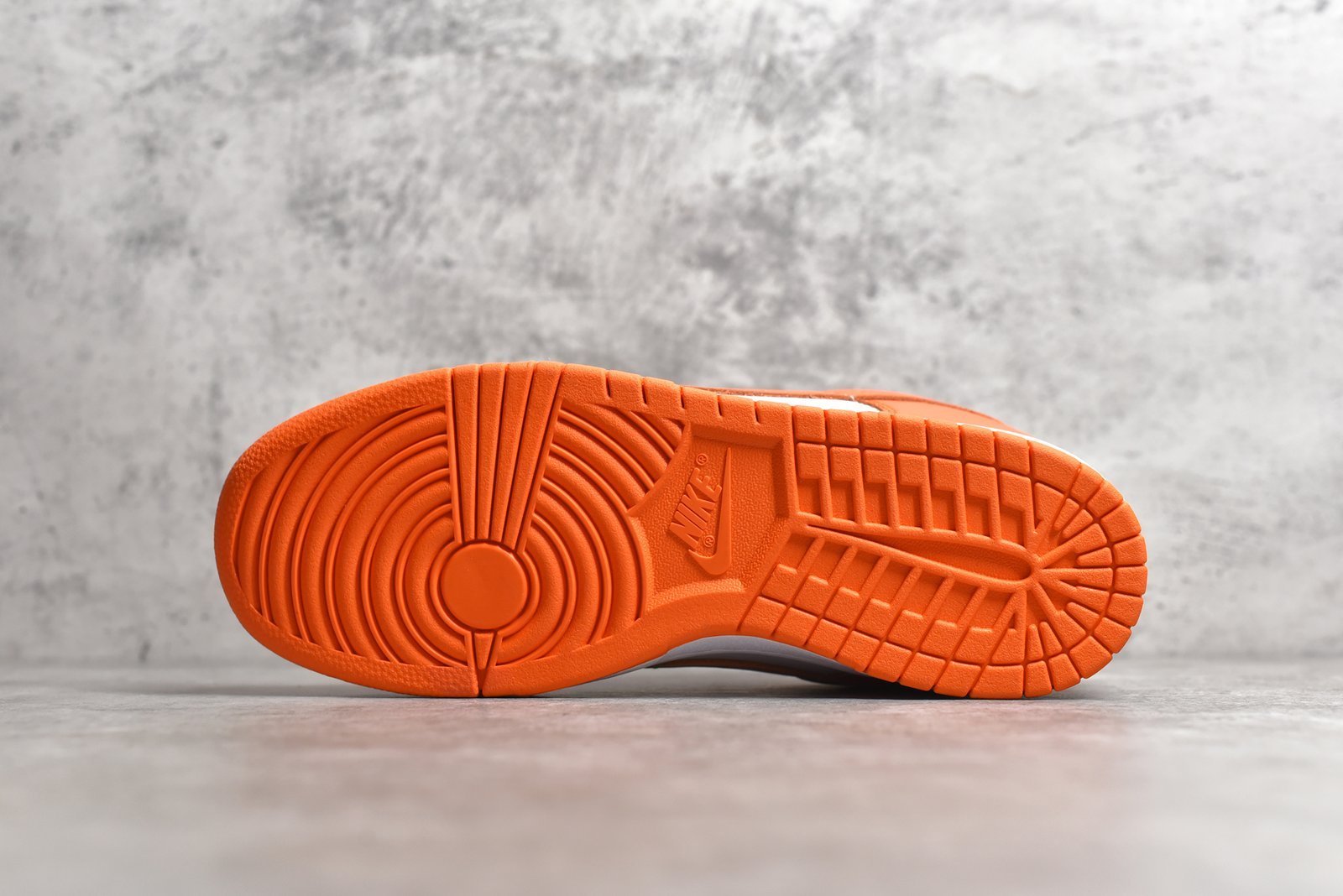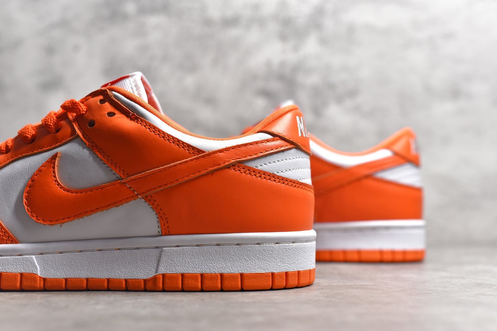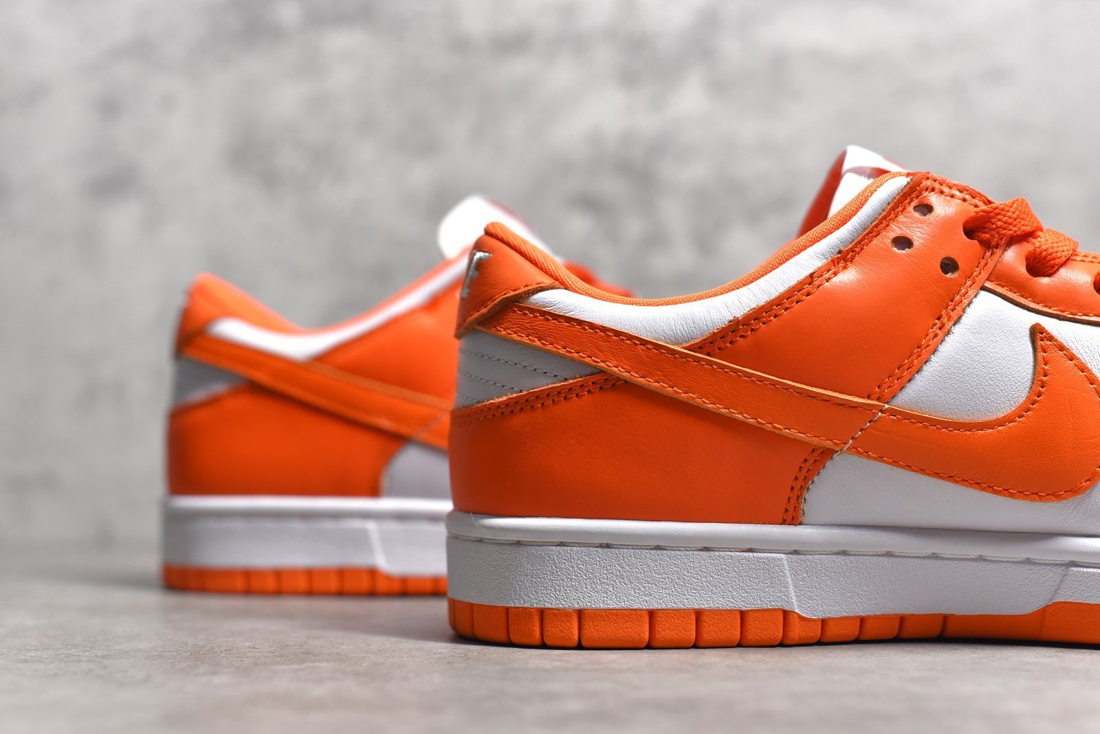 The Dunk Low SP “Syracuse” CU1726-101 is a vibrant and highly sought-after sneaker. known for its striking orange and white colorway and premium craftsmanship. Here are the distinctive features of this shoe: