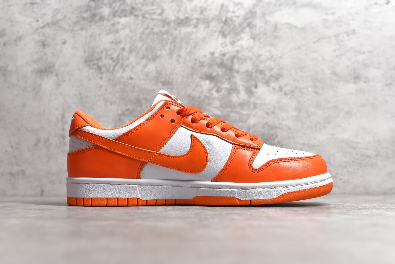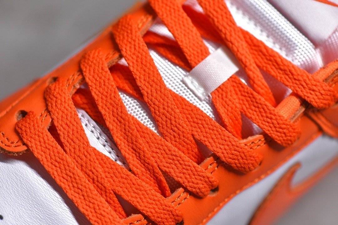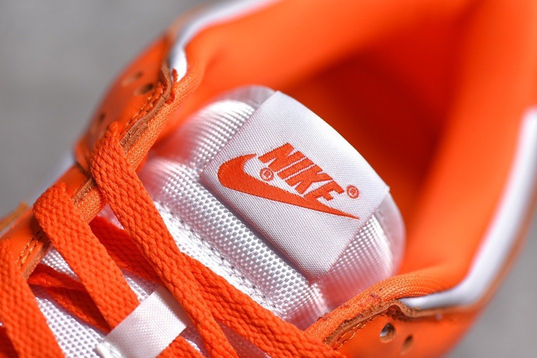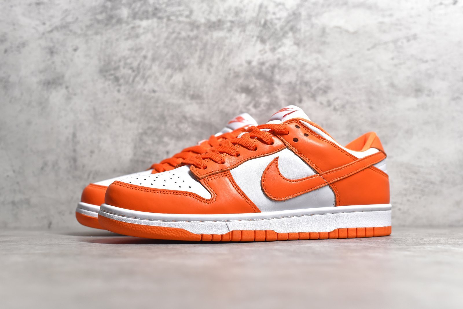 The Dunk Low SP “Syracuse” CU1726-101 is a vibrant and highly sought-after sneaker. known for its striking orange and white colorway and premium craftsmanship. Here are the distinctive features of this shoe:
