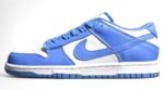 The Dunk Low UNC (2021) DD1391-102 features a classic white and University Blue colorway with premium leather materials. This sneaker offers durability and a high-quality feel. with Nike branding details adding to its appeal. With a padded tongue and collar. traditional foam midsole. and durable rubber outsole. it provides both comfort and performance for everyday wear.