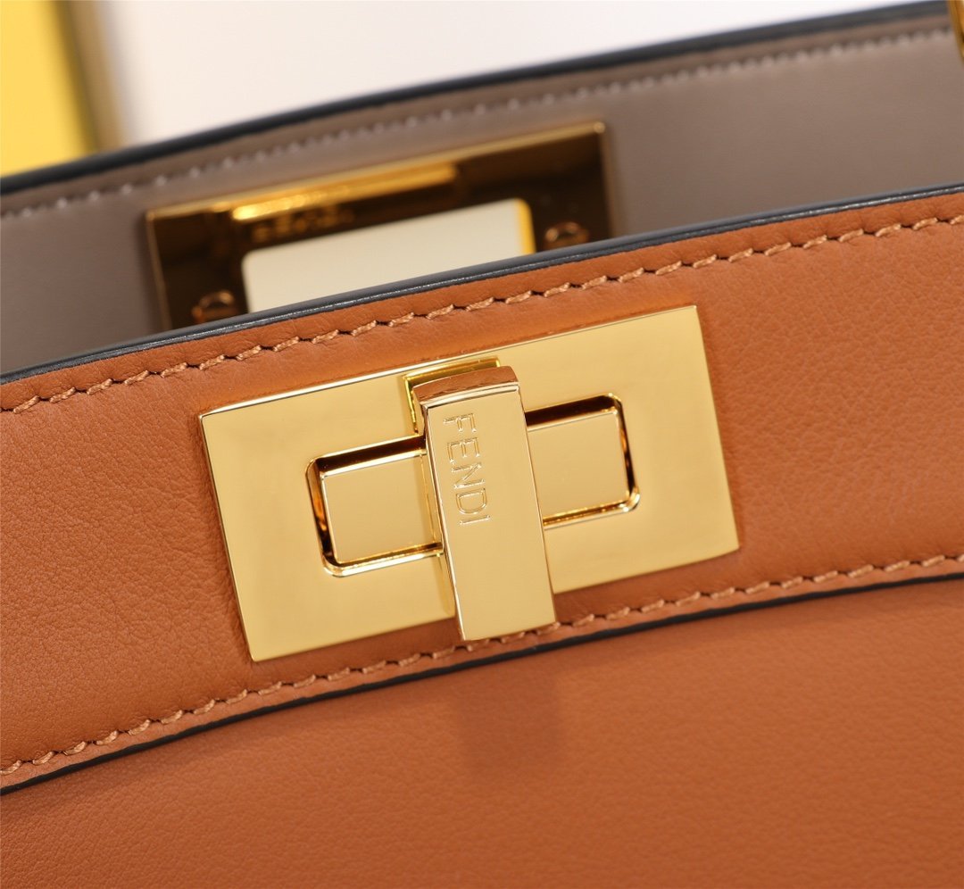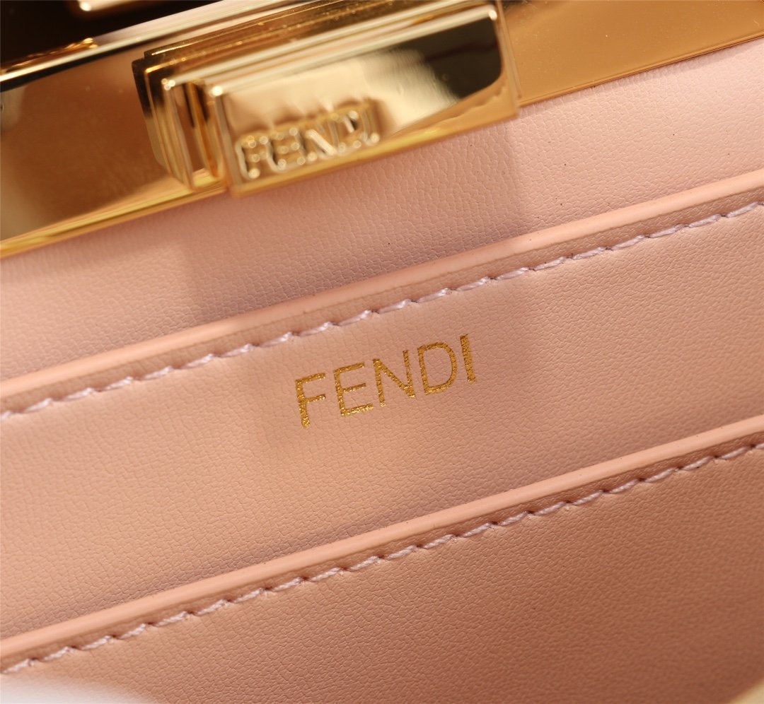 AAAAA grade. top quality. Fendi. Iconic Peekaboo ISeeU small handbag in black leather with classic twist locks on the sides. Pink and brown soft nappa leather lining with two compartments separated by hard baffles with buckle-down interior pockets and gold metal pieces. Handbag with handle and adjustable. removable shoulder strap for hand. shoulder or crossbody.