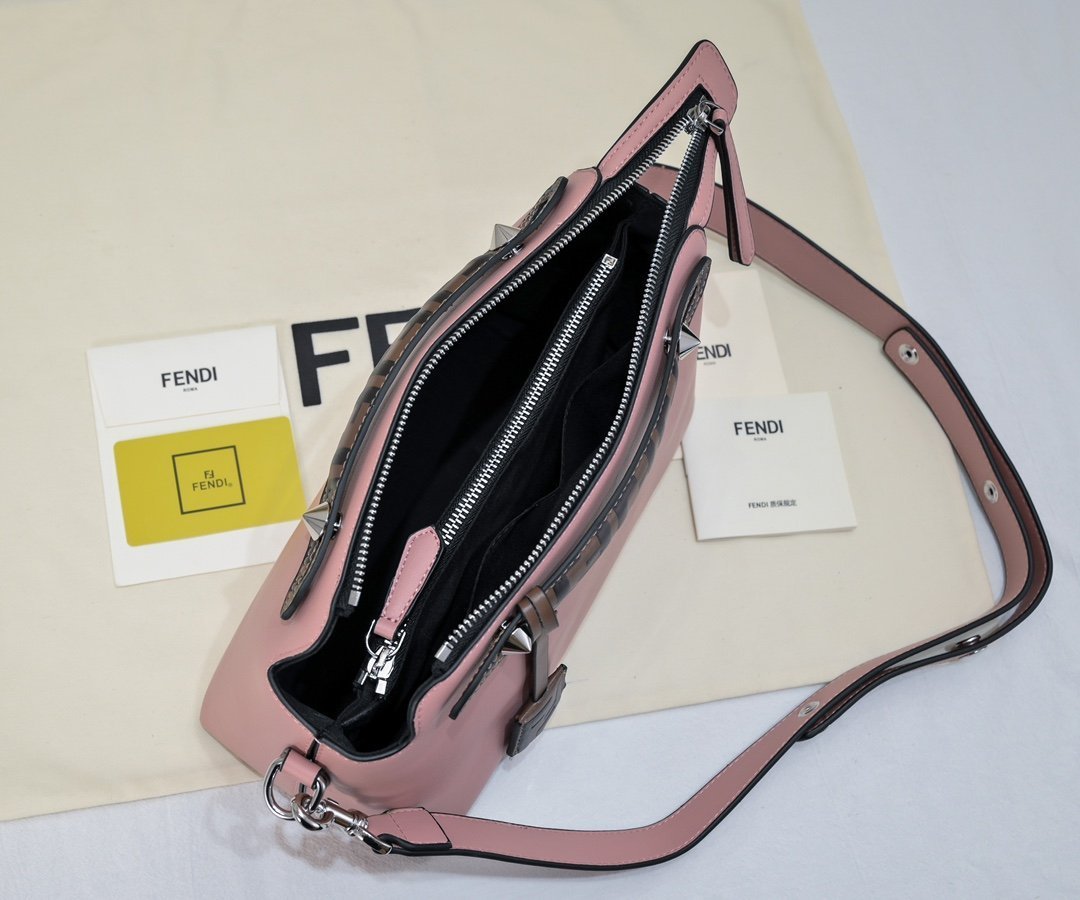 Add a chain and add 30 yuan. FEND BY THE WAY REGULAR Boston pillow bag. Made of imported calfskin material. Palladium-plated metal finish. Zipper opening and closing. FF embossed double handles and pendants. There is a double pocket inside. It is divided into two compartments. There is also a pocket in the partition part. The shoulder strap is adjustable and detachable. Size 28*12*17.