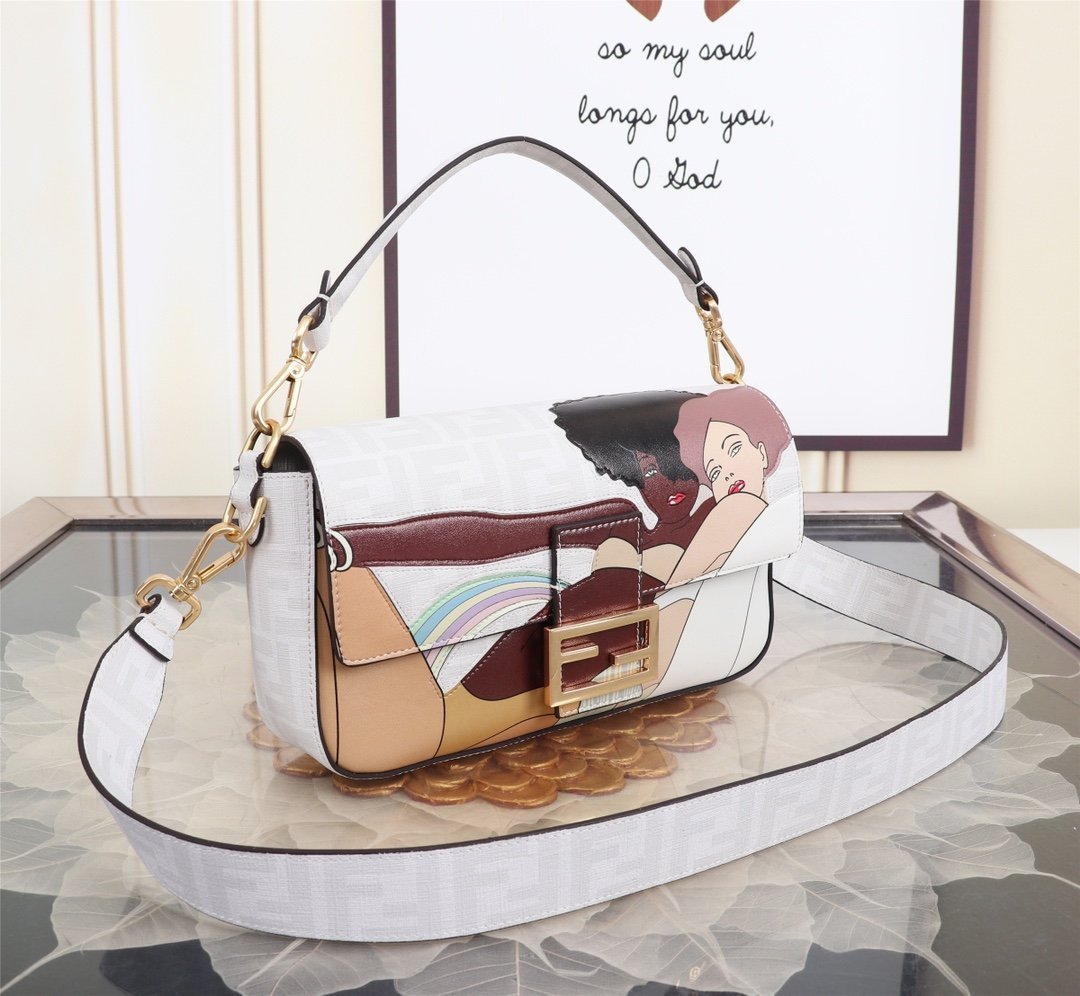 AAAAA level, top quality. Fendi. The latest artist fashion illustration BagBaguette baguette bag in 2022! The trendy and versatile first IT Bag has been so fashionable since its launch in 1997. It can be carried and messenger! The capacity is also awesome. This design is chosen to awaken people’s love for life. The perfect integration of the illustrations is perfect! Size 27-15-6 CM
