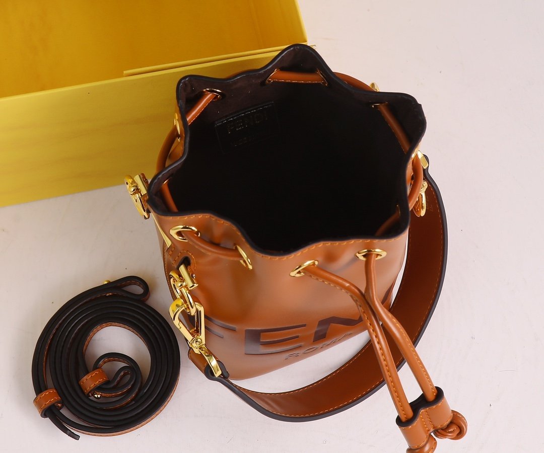 New F END1 Mon tresor bucket bag. The small bucket bag can be worn diagonally on the shoulder and serve as a decoration. Compared to the maturity of the classic double F. this small white bag with a large logo is even more simple and versatile! Model: 889200. Size: 18x12x10cm.