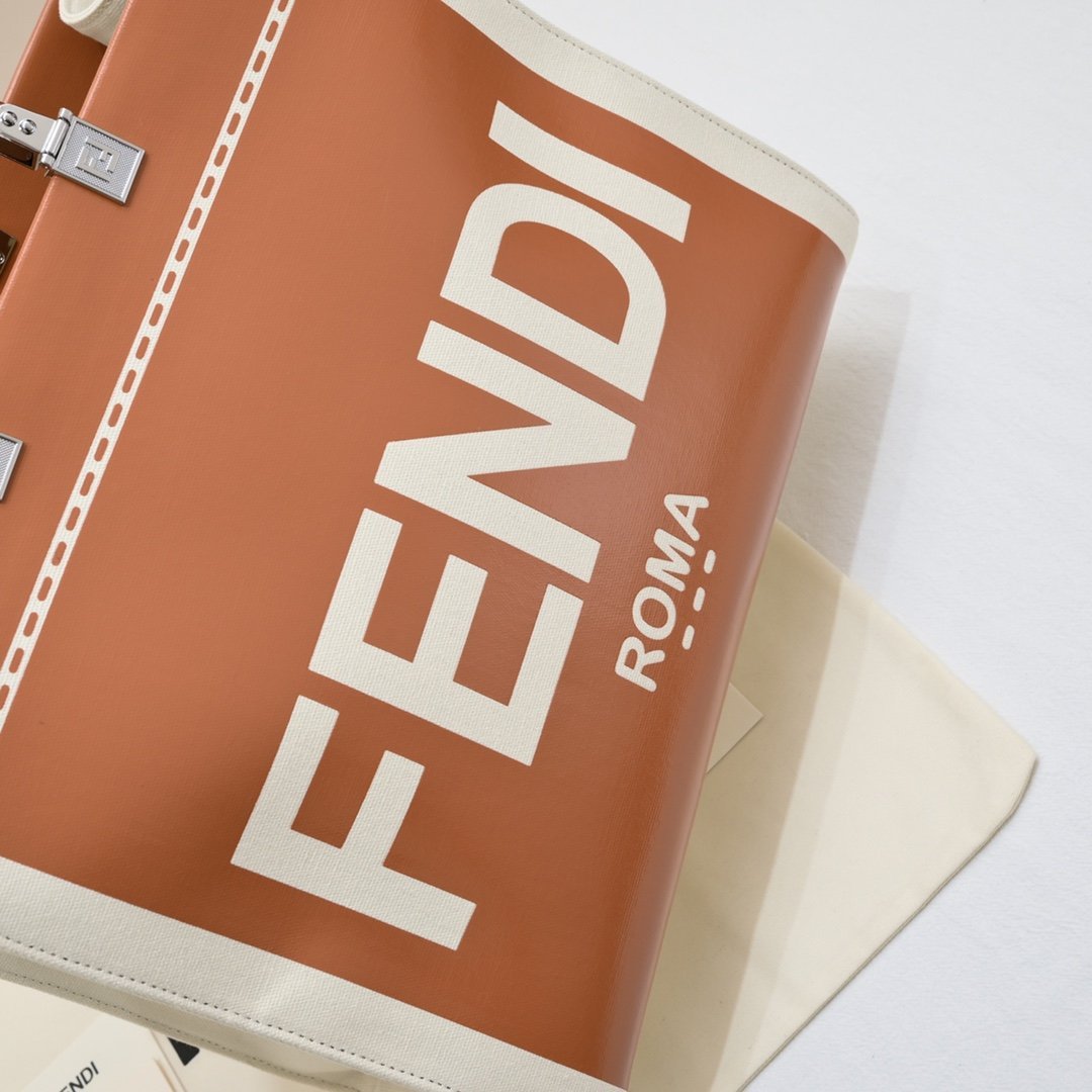 Model 4403 is in stock again: Sunshine medium handbag. patent leather material. engraved with FENDI ROMA letters showing natural canvas lining. Brown plexiglass hard handle FÉŃĎI TOTE tote bag Sunshine handbag simple letter LOGO design! Just holding it gives a great aura and doesn’t hurt the hand. The overall retro feeling is extremely strong. It is very suitable for fashionistas who like retro style. Highly recommended hard goods. 💥