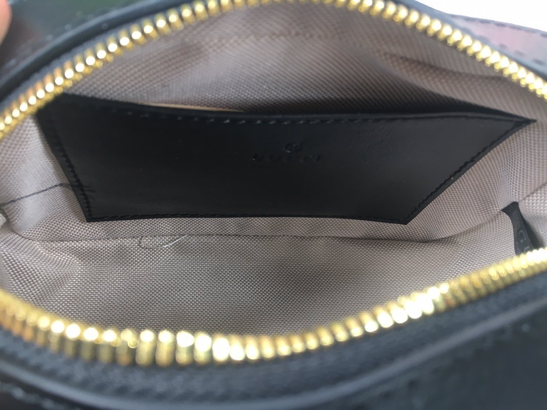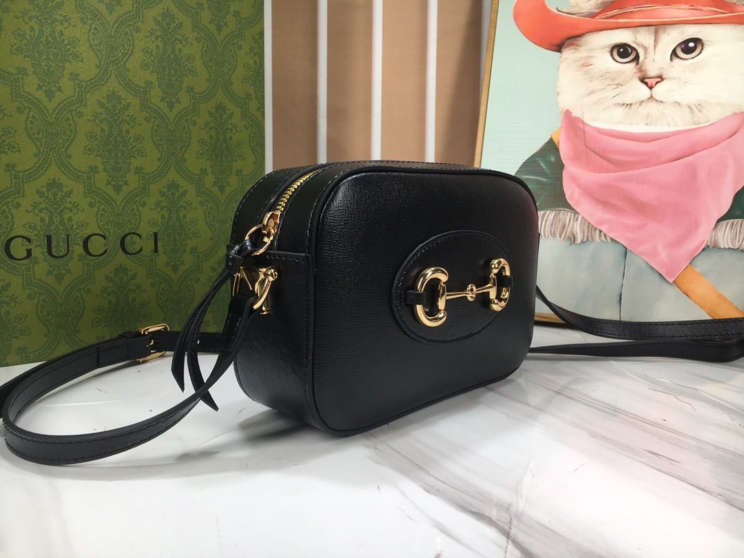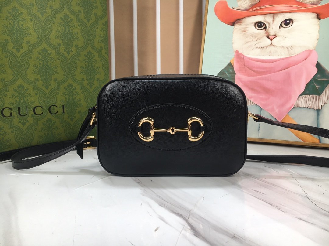 [New series presents the Horsebit 1955 series small shoulder bag. which combines versatility and practicality. This shoulder bag is crafted with classic black leather. The zipper closure and adjustable shoulder strap make the whole design more complete.
