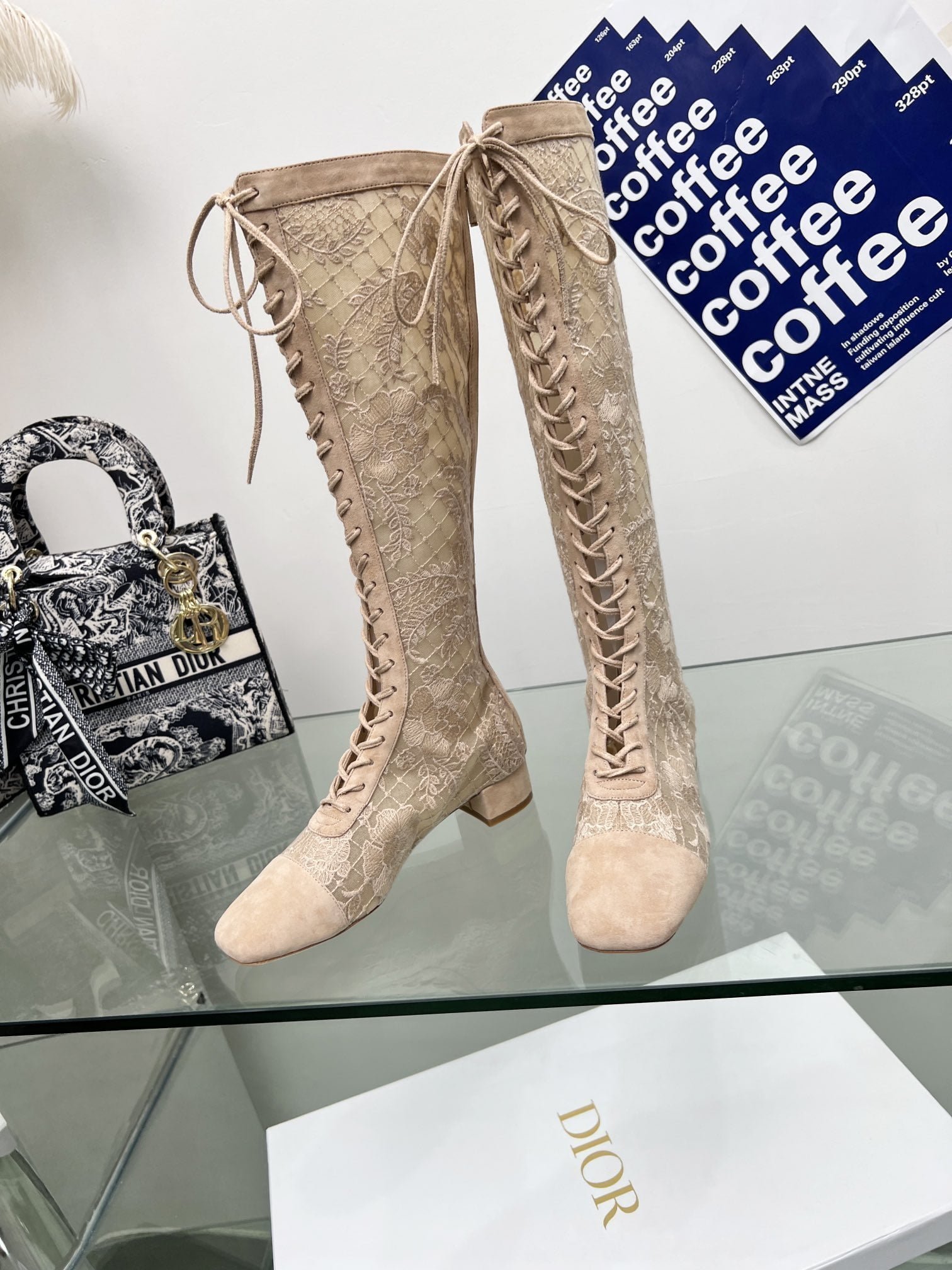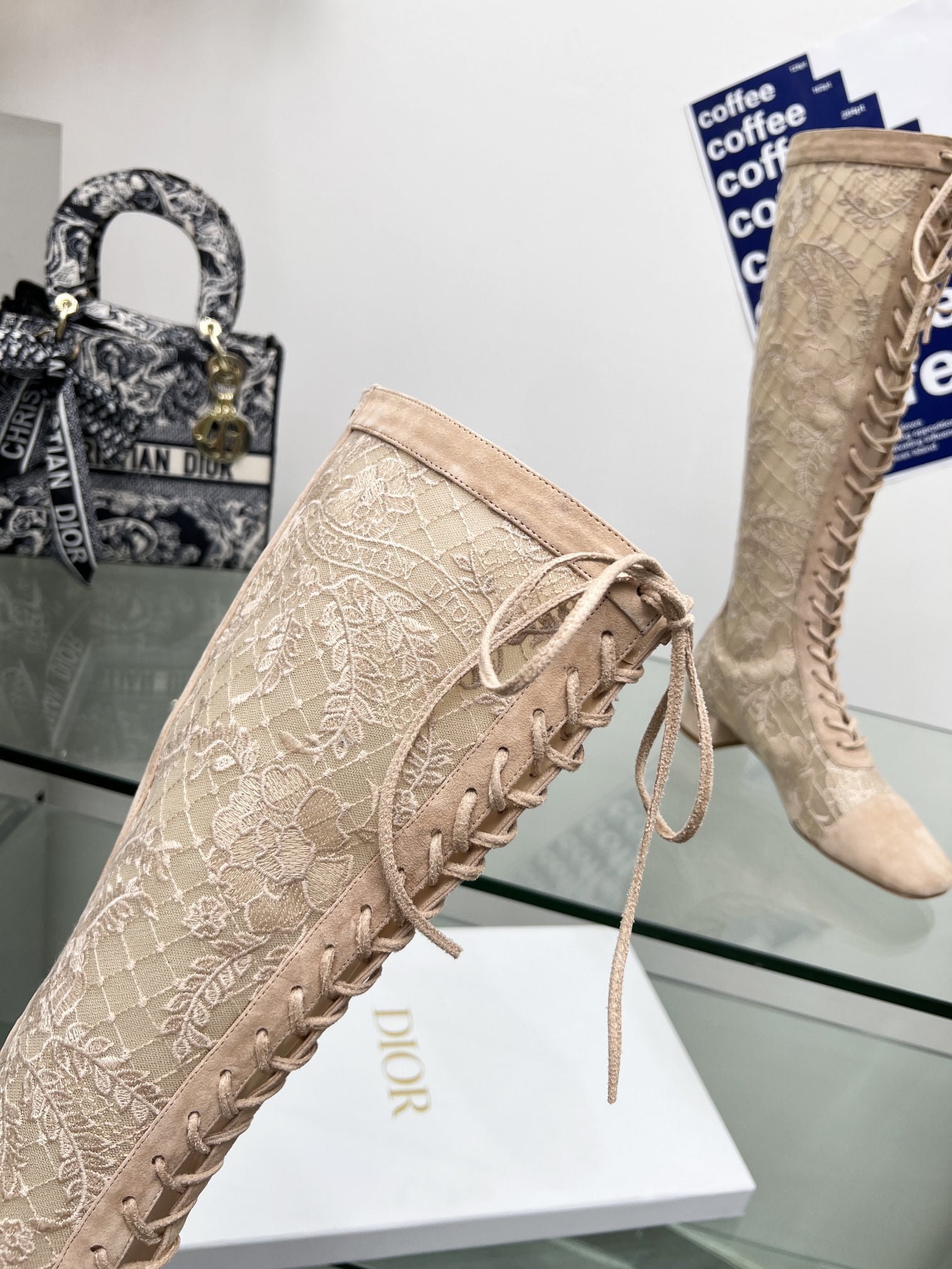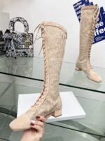 J’ADIOR Embroidery jacquard mesh boots Dior 2023 spring/summer latest color Jardin d ‘Hiver jacquard embroidery letter logo High heel bow matching color women’s shoes market top high-end version