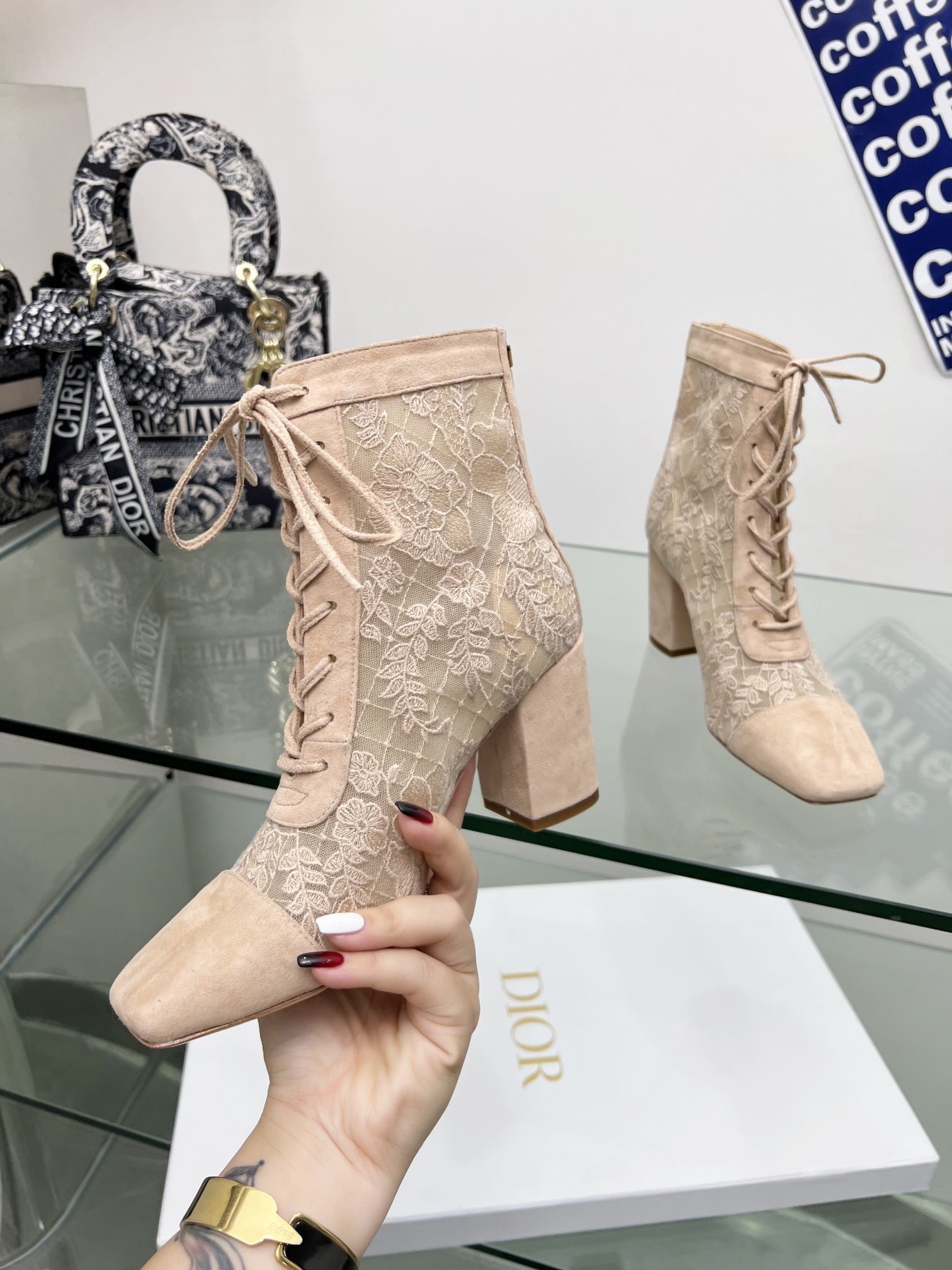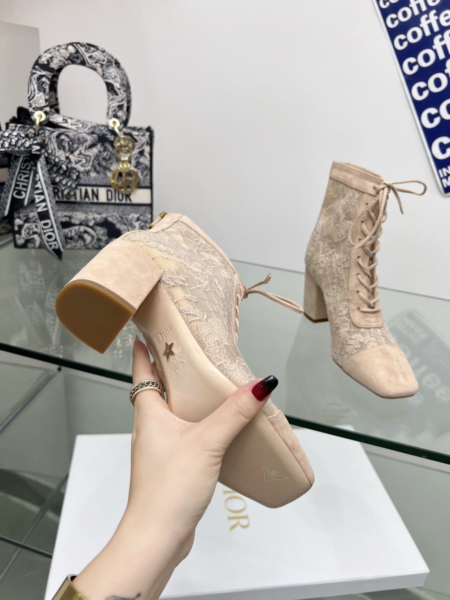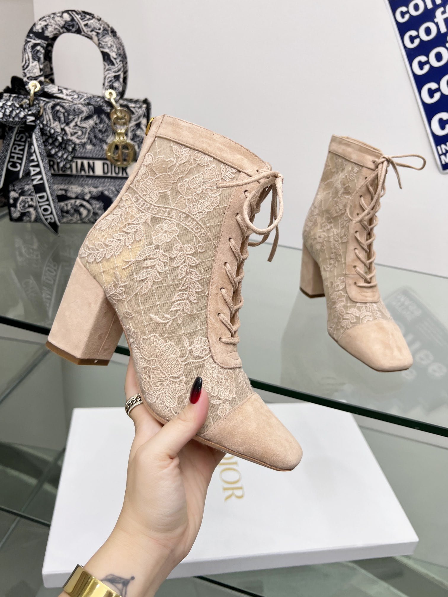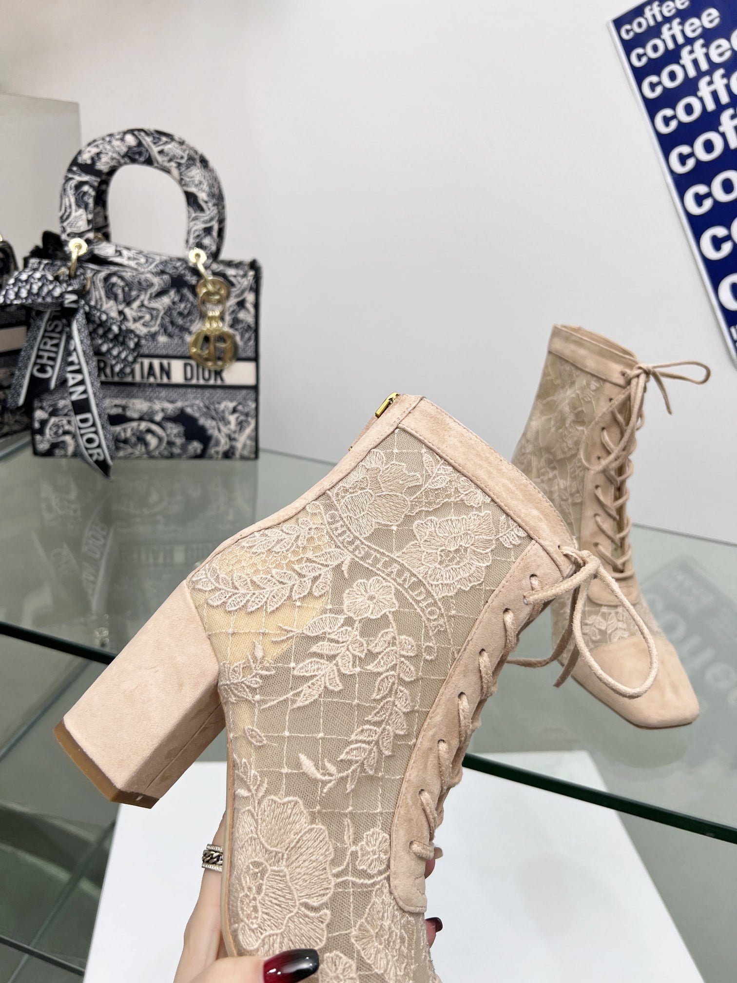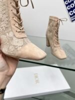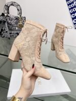 J’ADIOR Embroidery jacquard mesh boots Dior 2023 spring/summer latest color Jardin d ‘Hiver jacquard embroidery letter logo High heel bow matching color women’s shoes market top high-end version