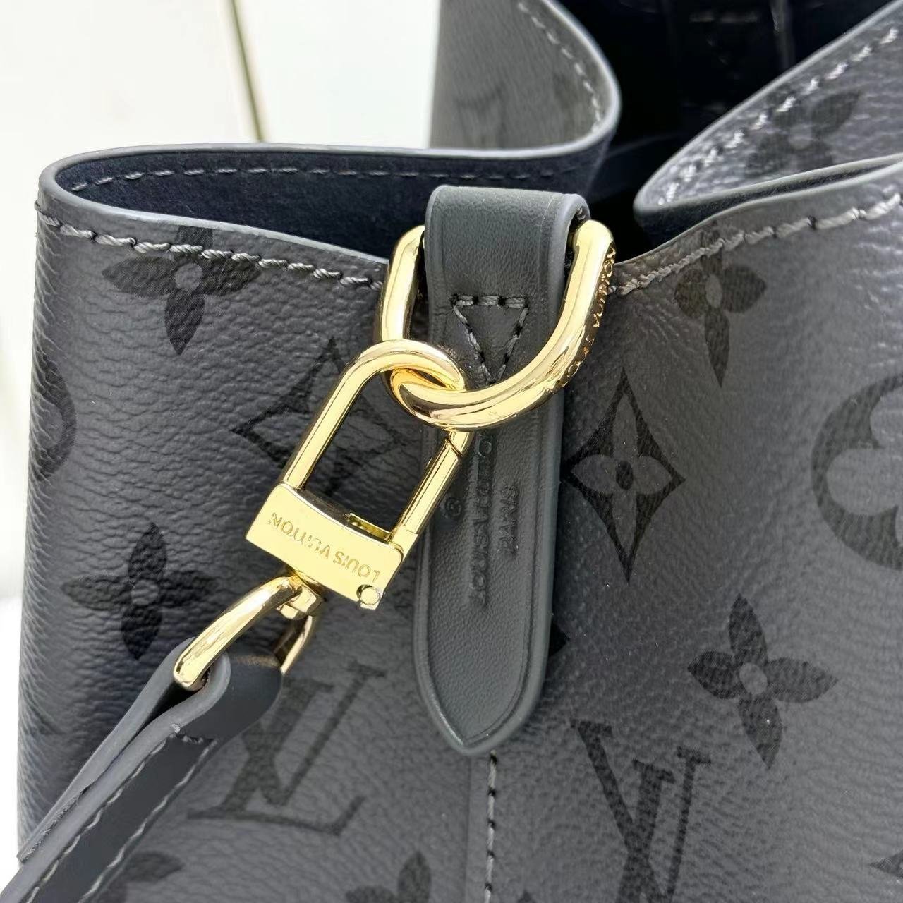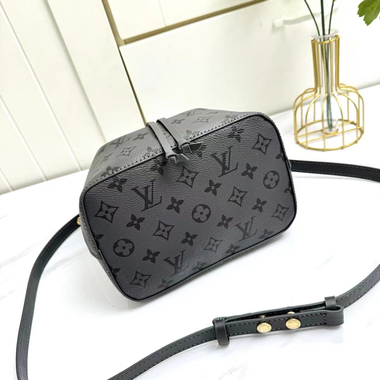 Model: 12749 bucket bag series NÉONOÉ BB handbag. The Neoono on BB made of Monogram canvas material decorated with natural leather. The iconic Neono of the house reinterprets the bucket bag into a small-sized design. It has ample storage space for carrying necessities such as keys. AirPods and iPhones. A leather cord that can safely store carried items. With a detachable handle and a detachable and adjustable strap. it is an item that can be styled in various ways. 20 x 20 x 13 cm.