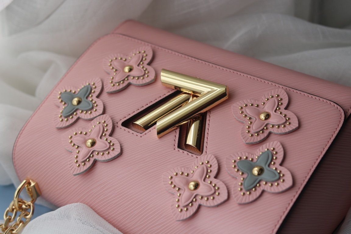 The Flower Tinsel theme in Louis Vuitton’s haute couture series is for the Twist medium handbag. adorned with a unique pattern: multiple layers of leather and studs reinterpret the Monogram flower. The rivets of the brand’s classic luggage are transformed into elegant decorations. complementing the exquisite black Epi leather body. The shape is small. and the unique curved base increases the capacity of the handbag. The adjustable chain is suitable for cross-body or elegant shoulder carrying. Medium size: 23*18*8cm.
