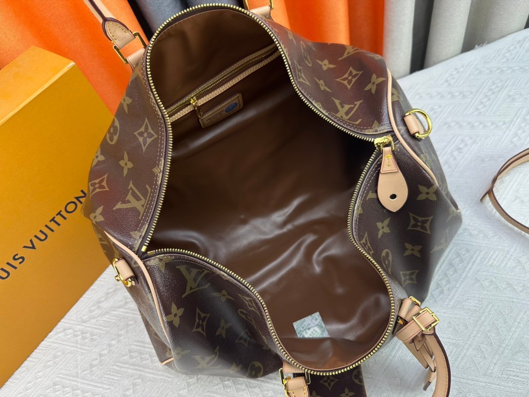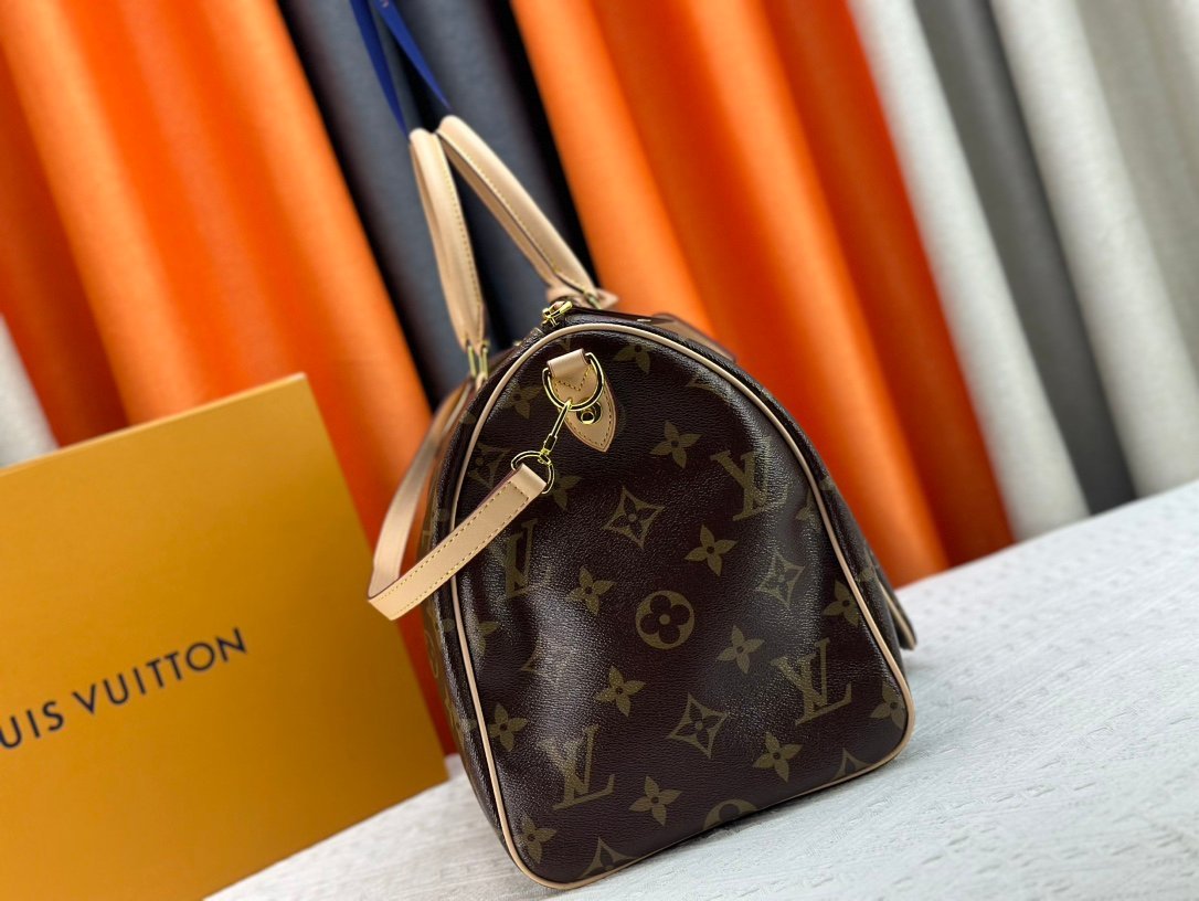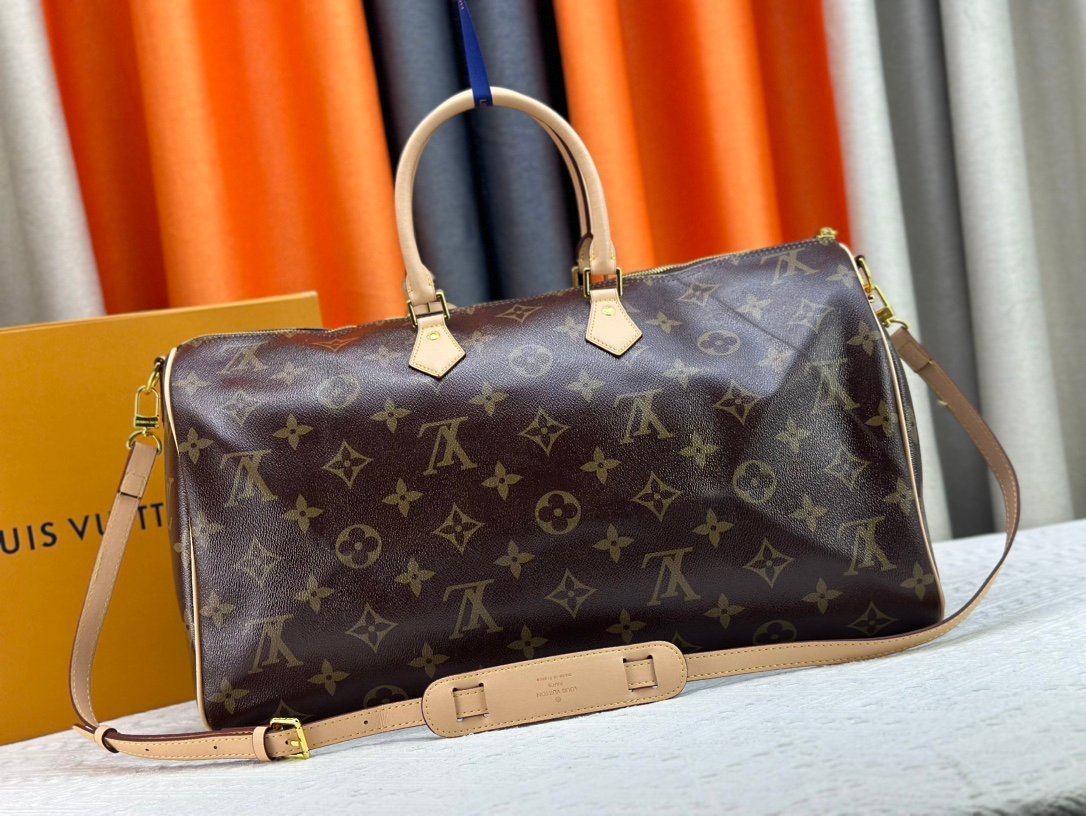 M46964 m24422 m41416 m24420 m11565 Speedy P9 Bandouliére 50 monogram leather handbag is wrapped in soft grained cowhide leather and lined with sheepskin. The silk-screened monogram pattern presents a blurred look of canvas printing. revealing the new season’s ingenuity of creative director Pharrll Williams. Size: 50x29x23cm.