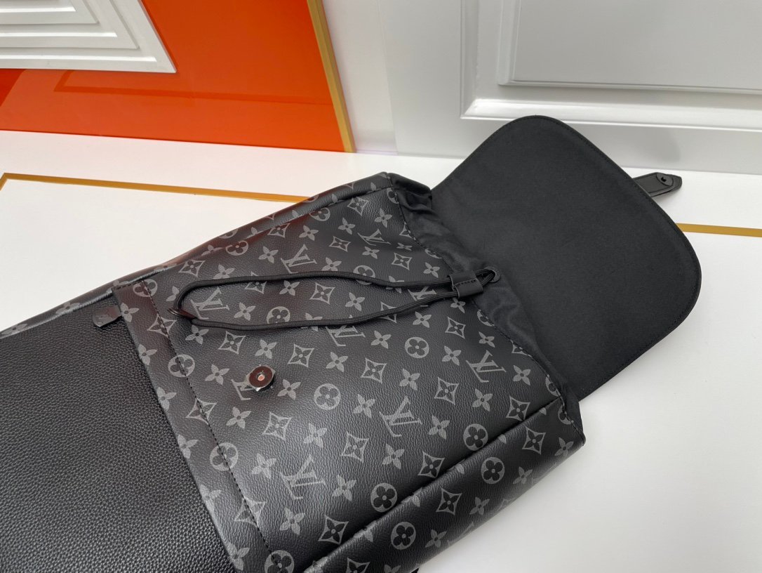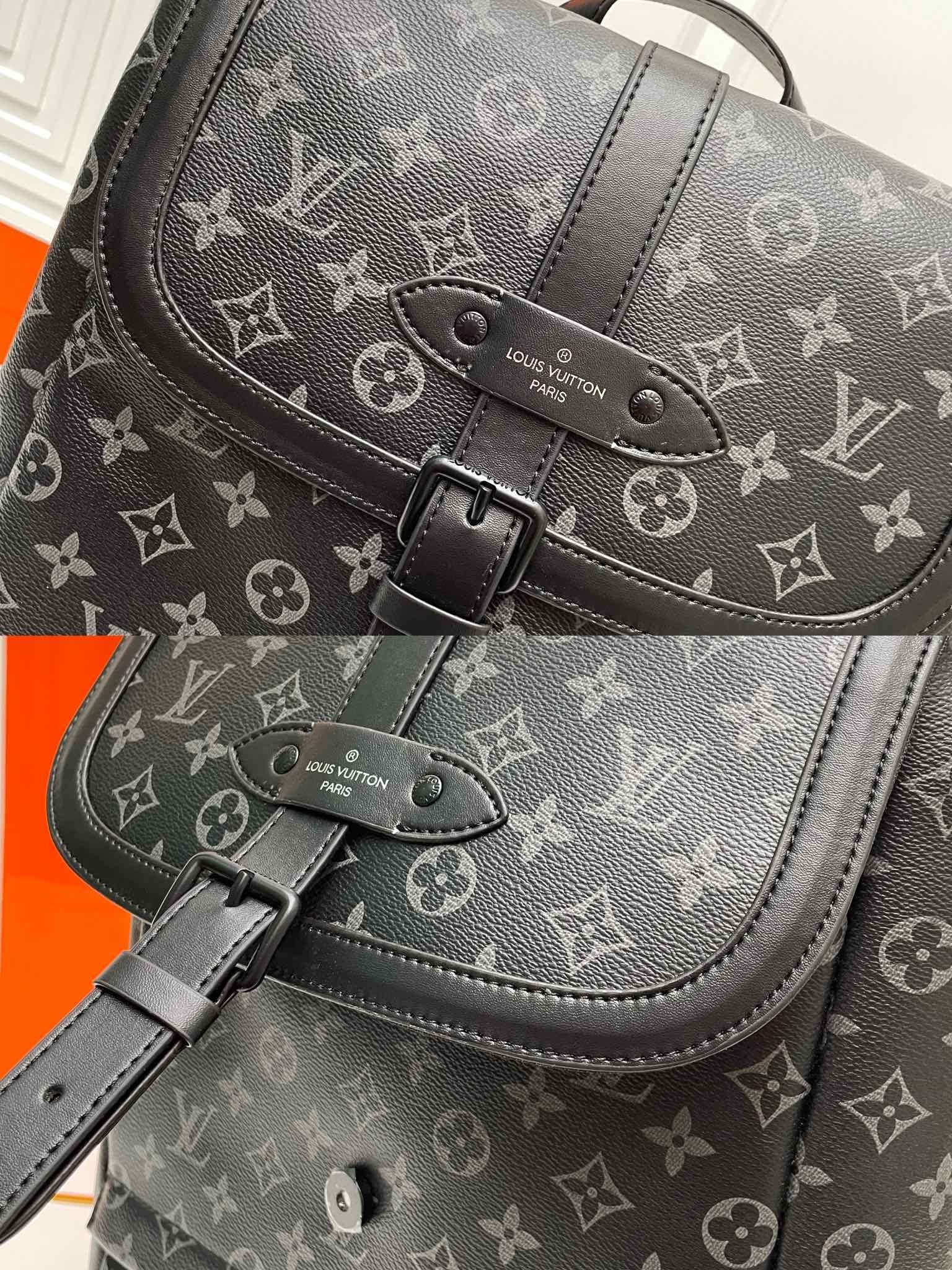The new M45913 Saumur backpack gives a modern touch to Louis Vuitton’s classic item. the equestrian-inspired Saumur handbag born in 1986. The understated Monogram Eclipse canvas is paired with leather detail designs with traditional brand connotations. including a buckle shoulder strap with a hidden magnetic clasp. It has a spacious main compartment and a unique notebook pocket inside. with diverse functions and is a good companion for daily outings. Size: 27.0 x 42.0 x 13.0 cm (length x height x width).