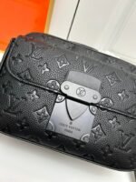 This S Lock messenger bag is made of Monogram Macassar canvas. The new lock is inspired by the trunk lock designed by Georges Vuitton in 1886. Special finishing techniques give this magnetic metal lock a striking and modern look. It is also equipped with a spacious zipper compartment. trunk-style leather handles. and an LV-logo shoulder strap. It is stylish and easy to use. Size: 22.18.8. M58489 embossed. M45806 black. M45836 blue.