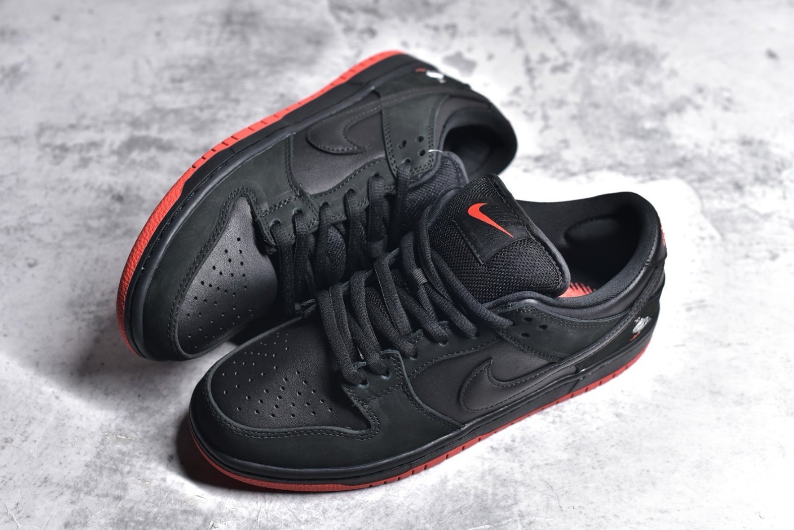 The NK SB Dunk Low Black Pigeon 883232-008 is a highly sought-after sneaker known for its iconic design and cultural significance. These sneakers feature a black leather upper with contrasting white accents. embodying a sleek and timeless aesthetic. The design pays homage to the original Pigeon Dunk colorway with subtle details that nod to the pigeon theme. The padded collar and tongue ensure comfort. while the perforated toe box enhances breathability. A Zoom Air unit in the heel provides responsive cushioning for all-day wear. and the durable rubber outsole offers reliable traction and grip.