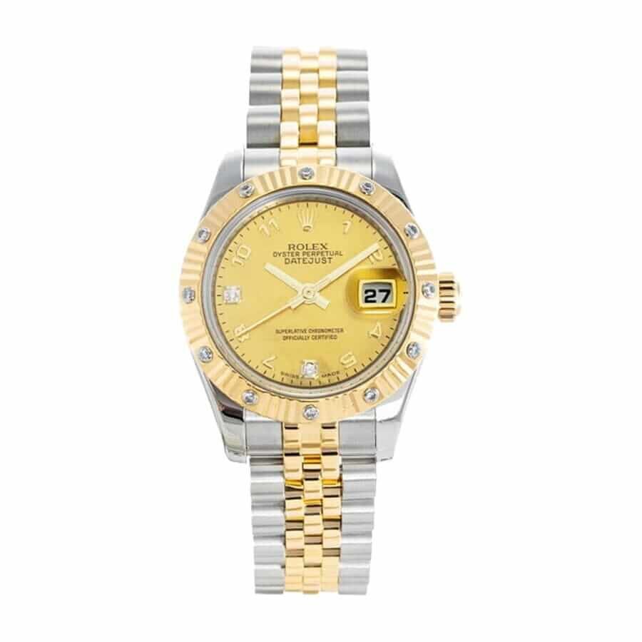 This Rolex Datejust 179313 replica is a stunning piece of craftsmanship. It features a 904L stainless steel case with a yellow gold and gem-set bezel. and a sapphire crystal. The Jubilee bracelet is adjustable and made of 904L stainless steel with yellow gold and steel colors. The champagne dial is adorned with diamond hour markers and 904L stainless steel stick hands. The automatic movement has a power reserve of 60 hours and is accurate to within COSC certification limits.