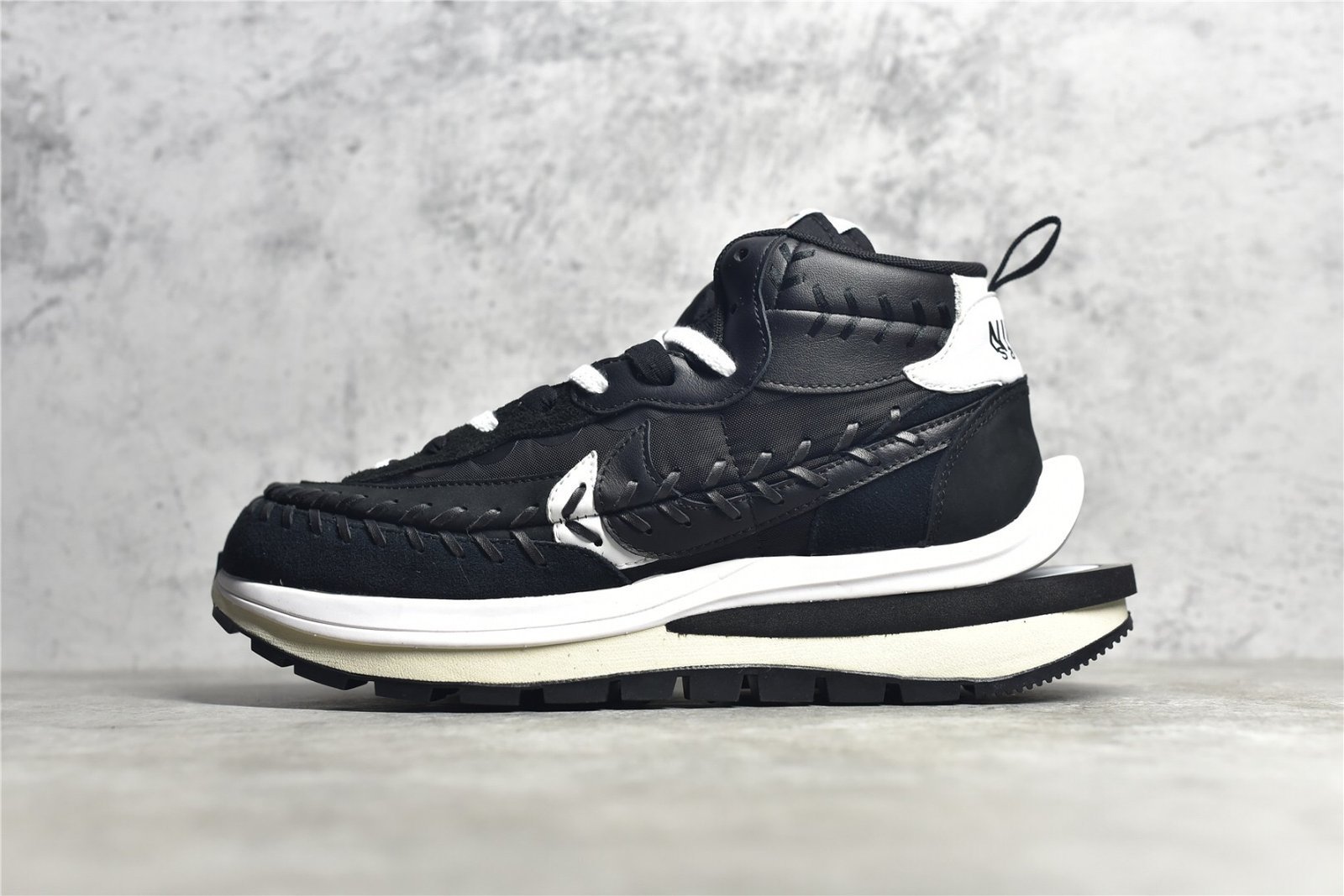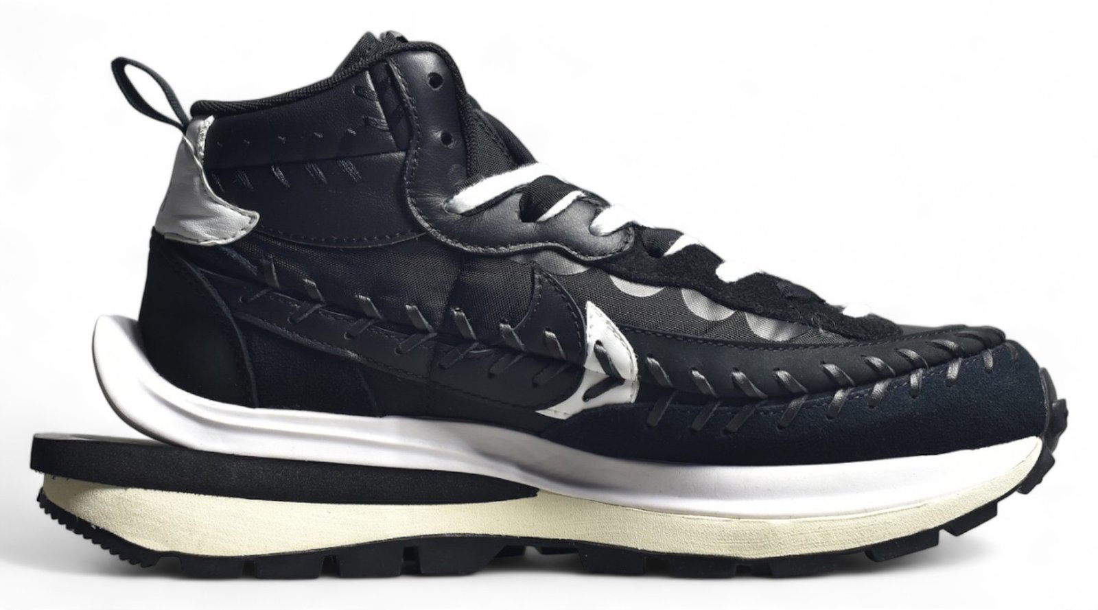 The Sacai 3.0 – High features a stylish high-top design with premium materials and unique double-layered construction. Includes padded collar. foam midsole. and durable rubber outsole. Ideal for fashion-forward sneaker enthusiasts.