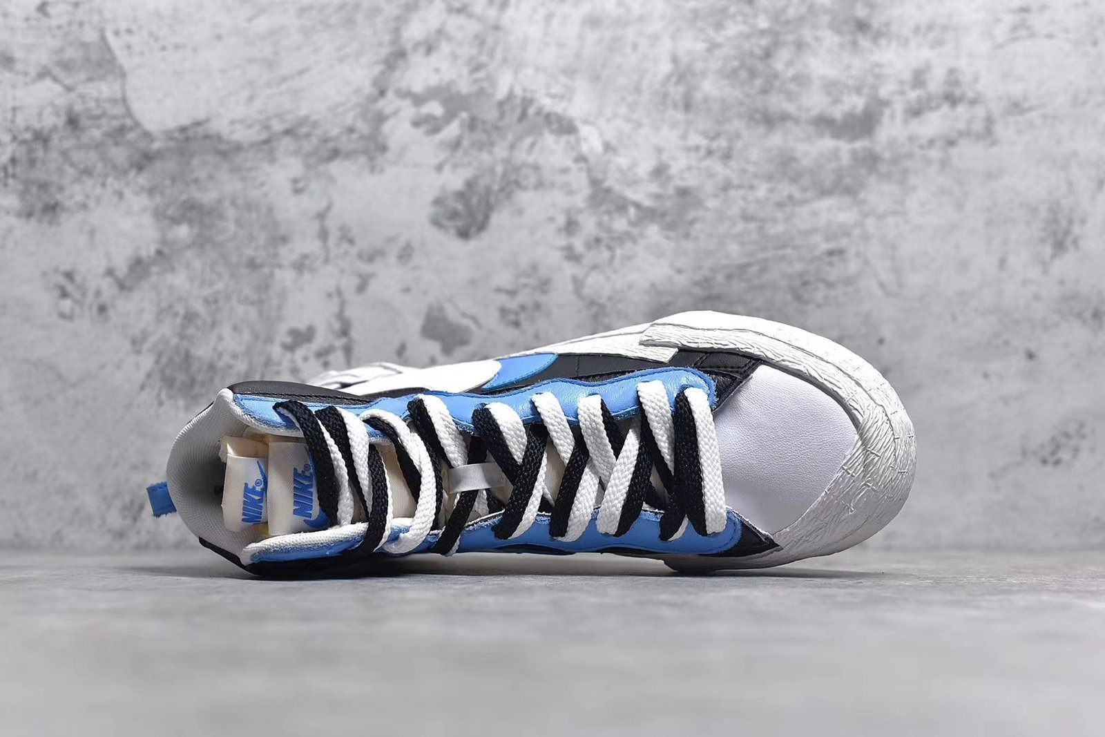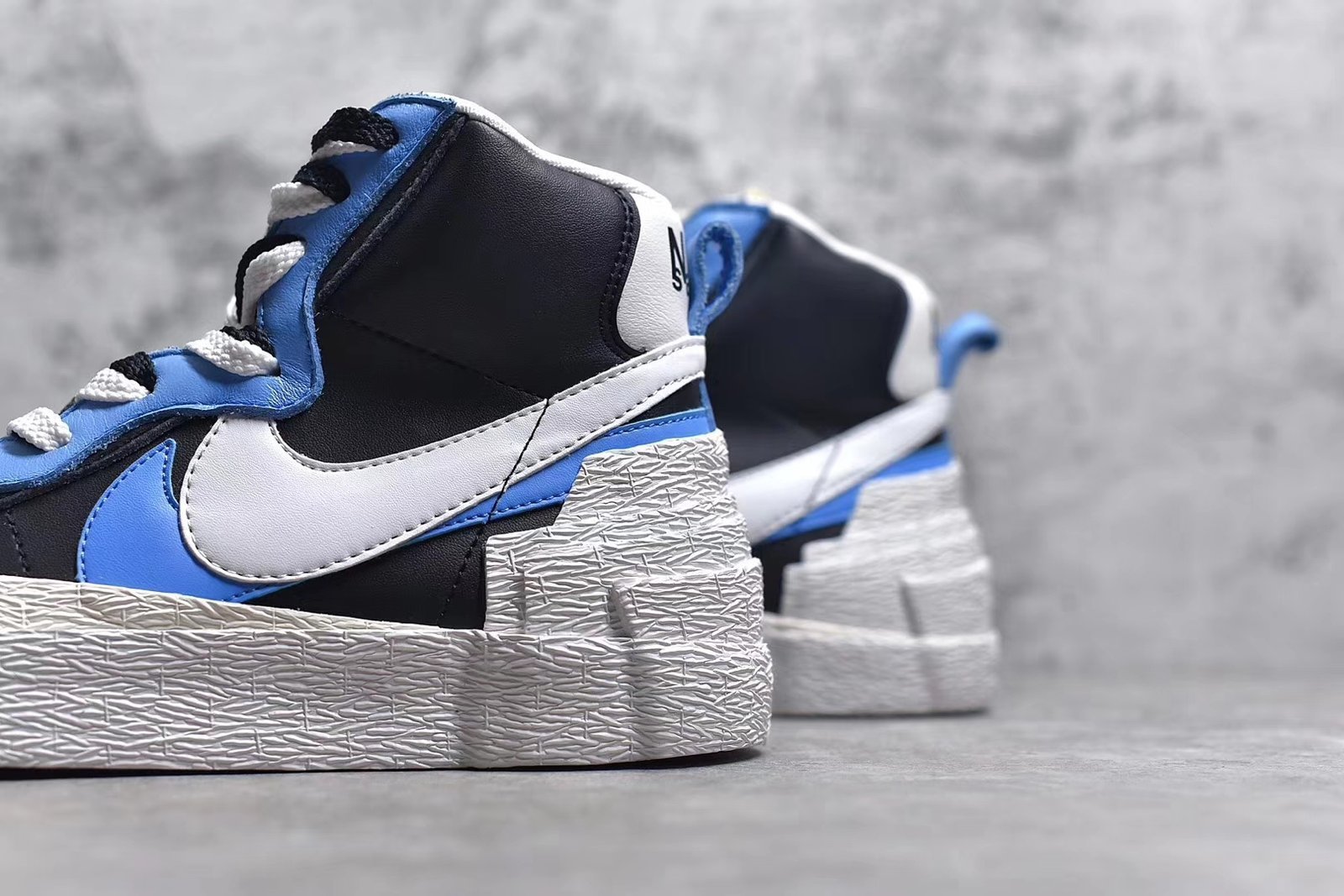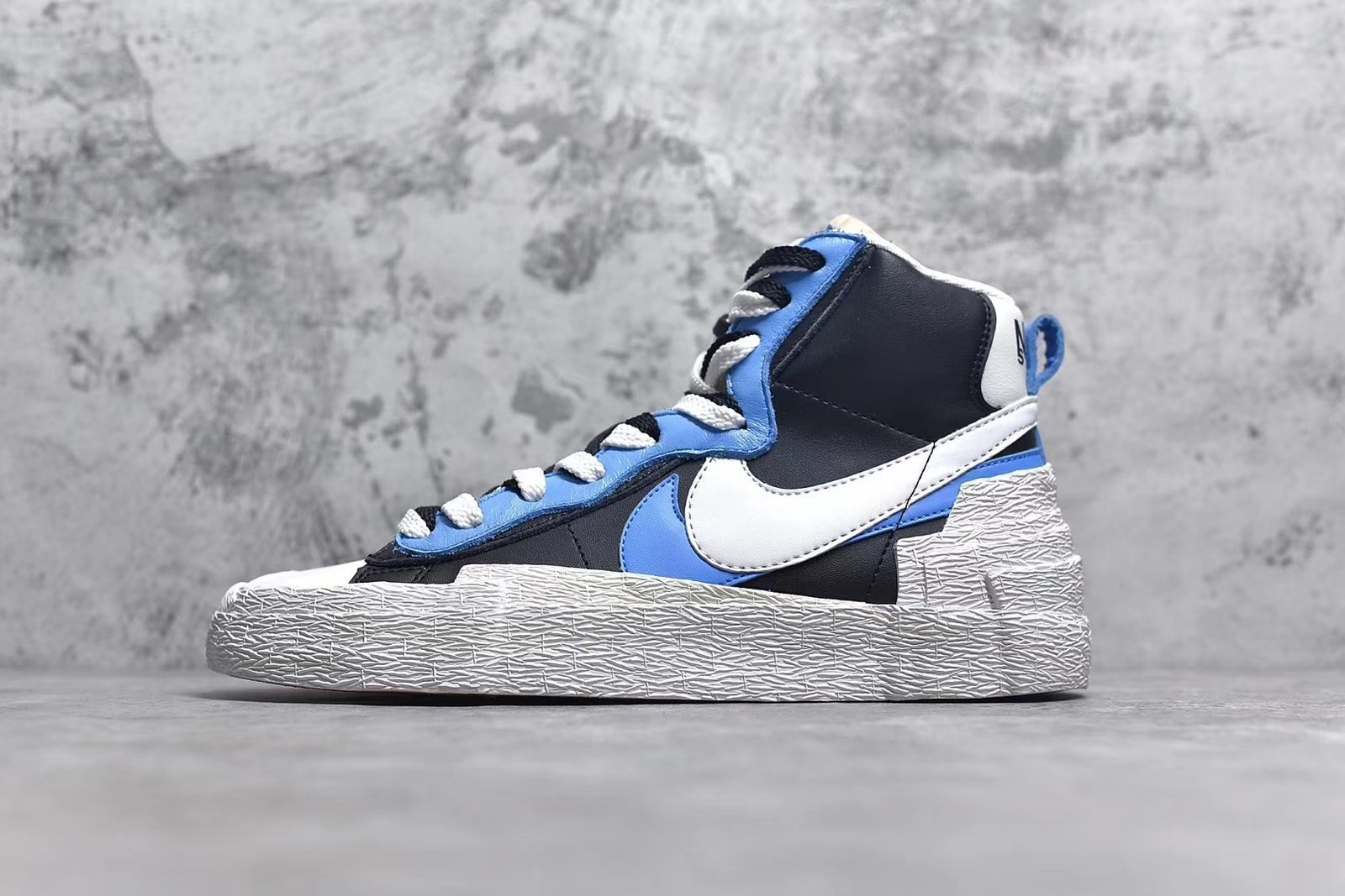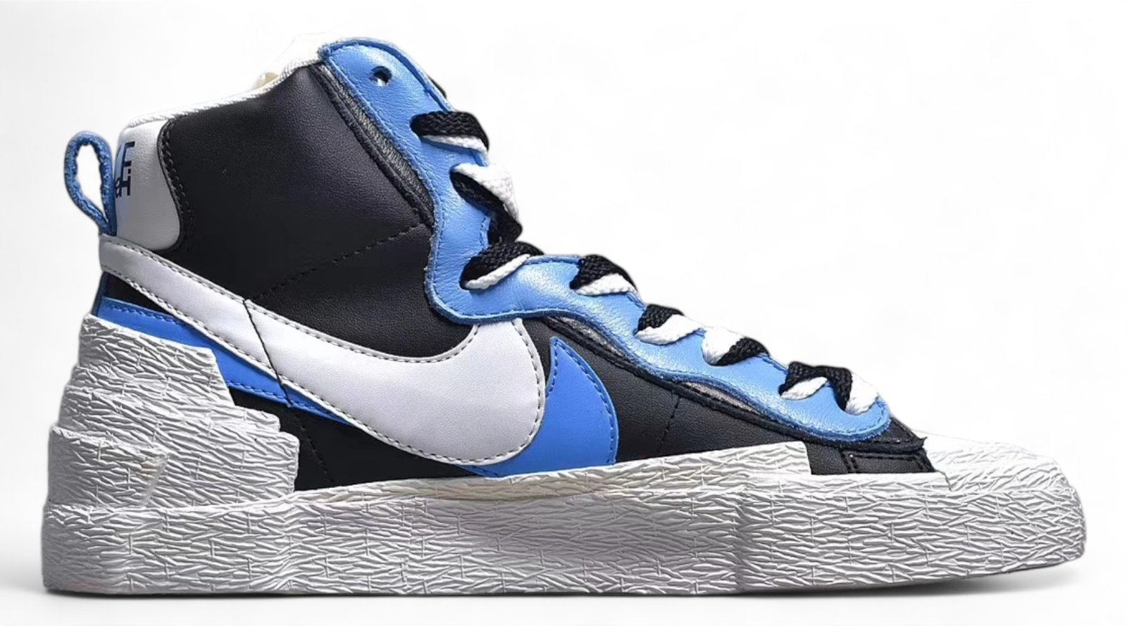 The Sacai blazer – blue features a luxurious blue suede upper with white and grey accents. crafted with premium materials for durability. Includes breathable mesh. padded collar. visible Air-Sole unit. and durable rubber outsole. ideal for fashion enthusiasts.