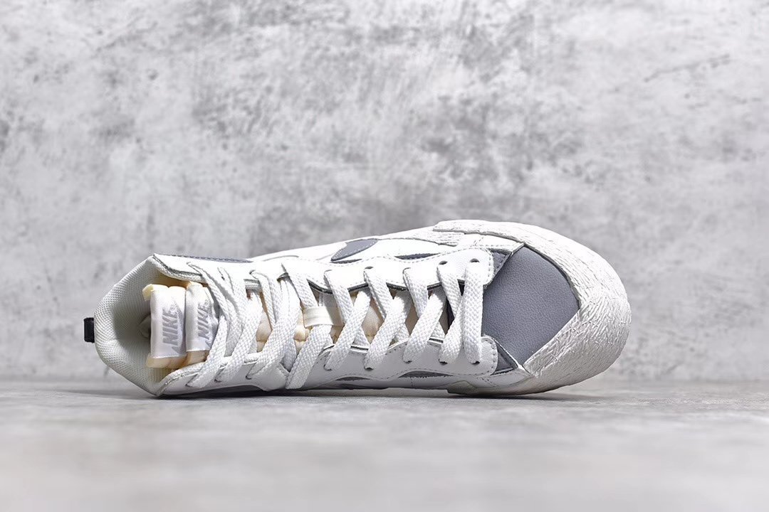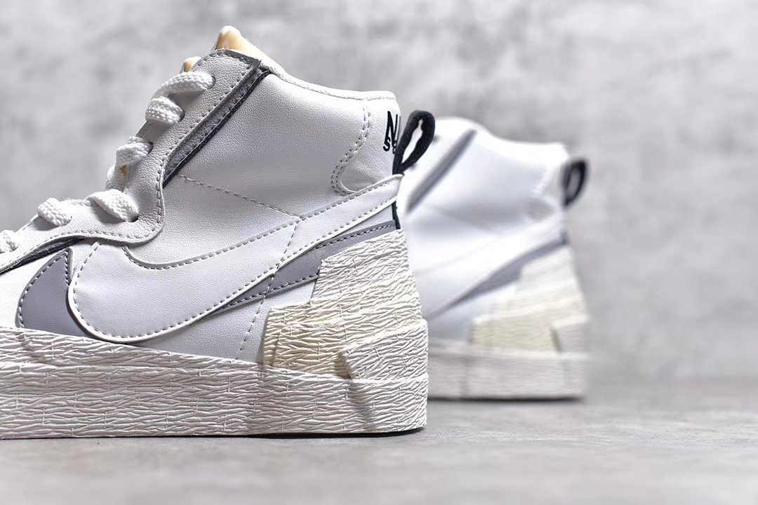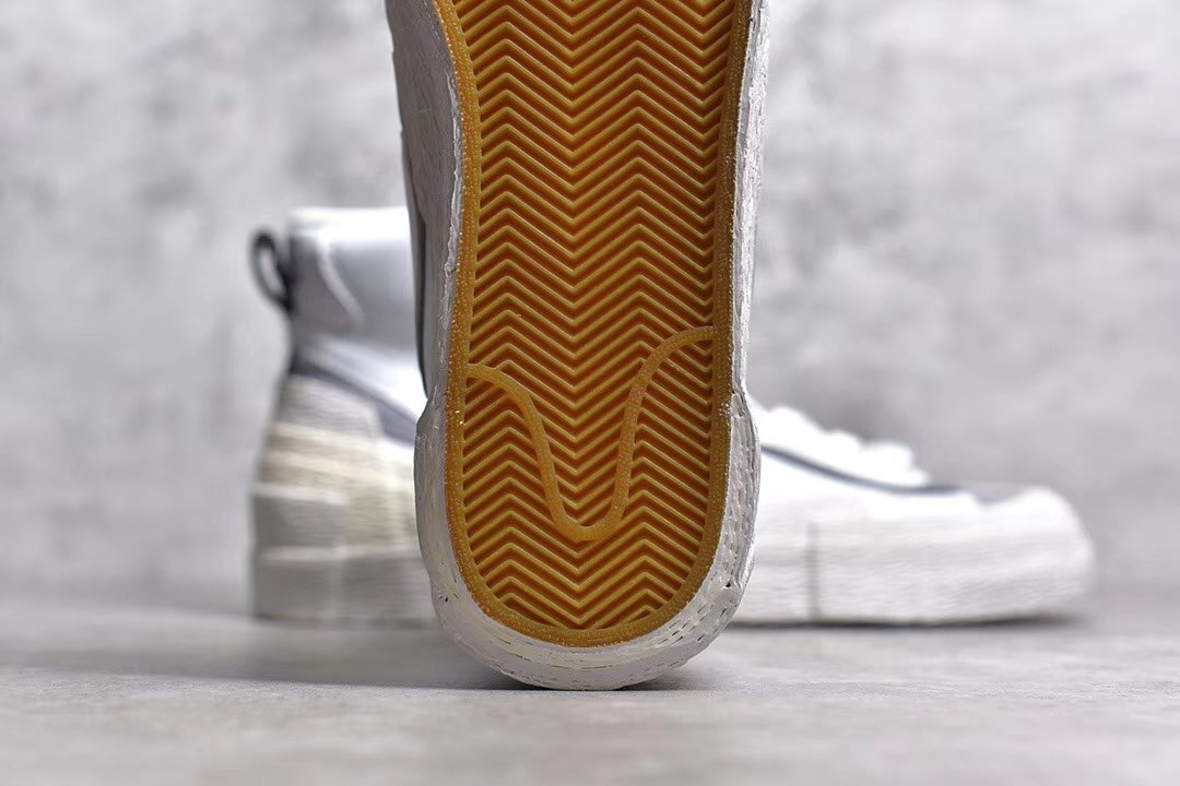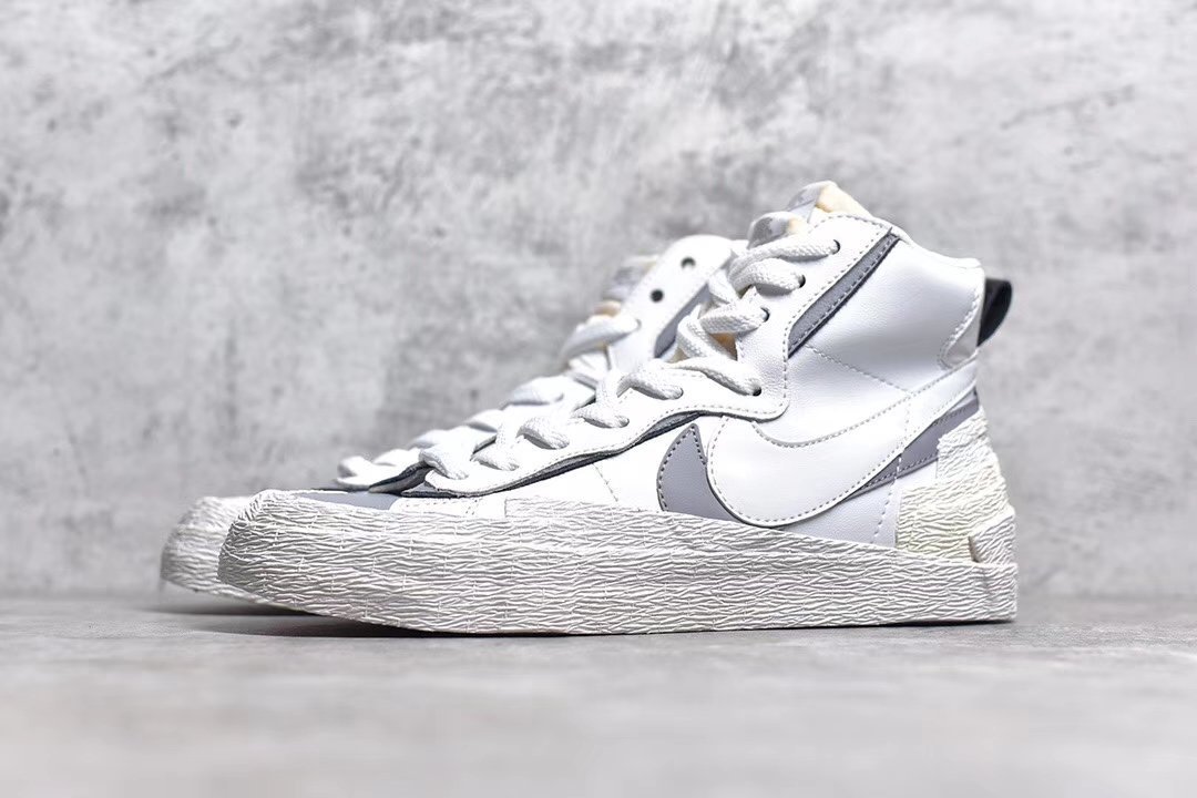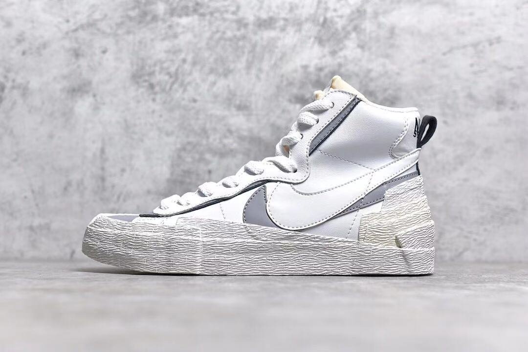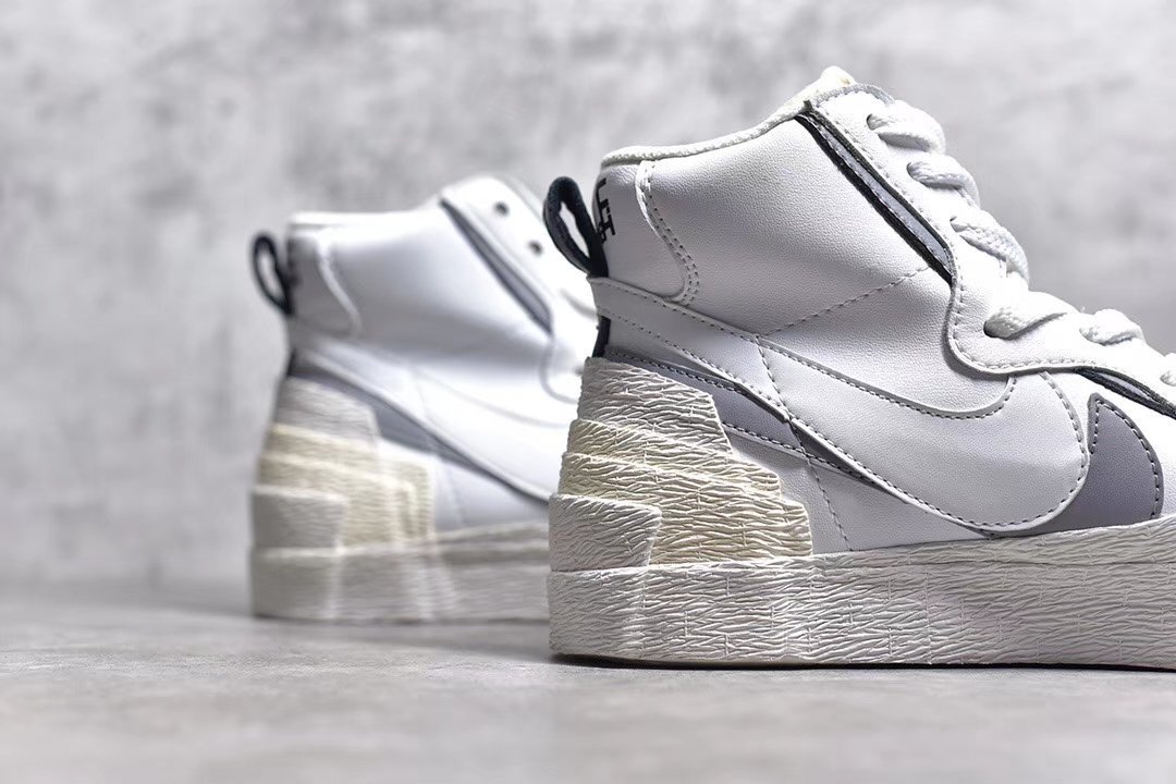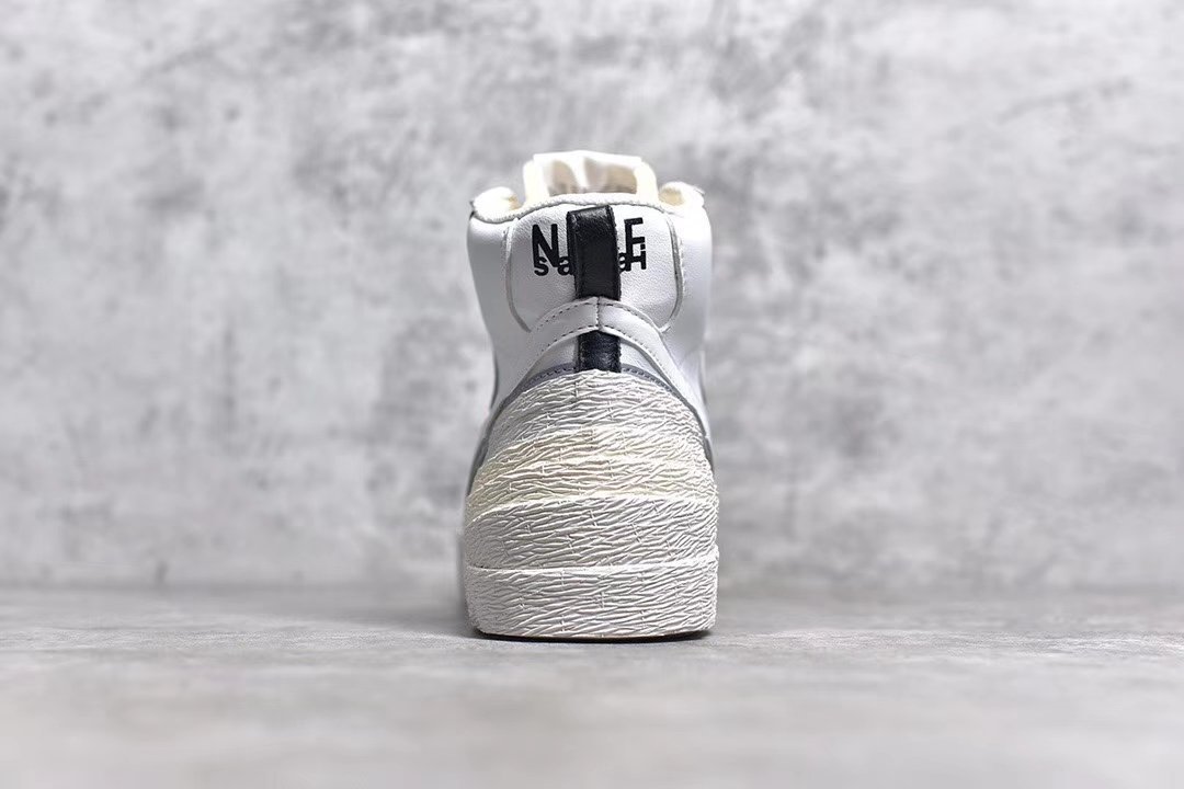 The Sacai blazer – white features a pristine white leather design with dual Swoosh logos. Includes premium materials. breathable mesh. padded collar. responsive Air-Sole unit. and durable rubber outsole. perfect for timeless style and comfort.