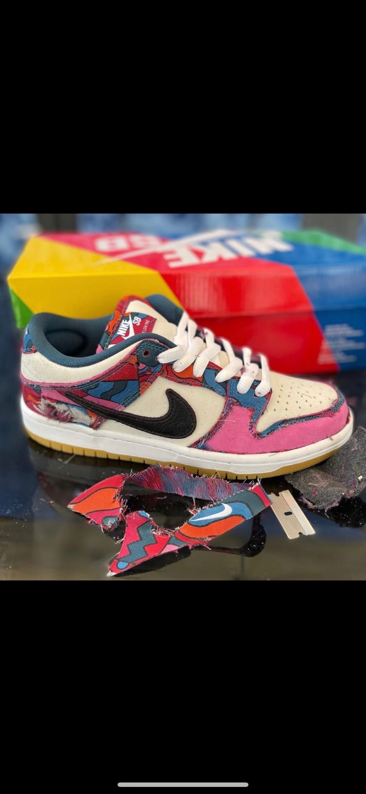 The SB Dunk Low Pro Parra Abstract Art (2021) is a striking collaboration between Nike SB and Dutch artist Piet Parra. Known for its vibrant design and premium materials. this sneaker is a favorite among collectors and enthusiasts. Here are the typical features of this shoe: