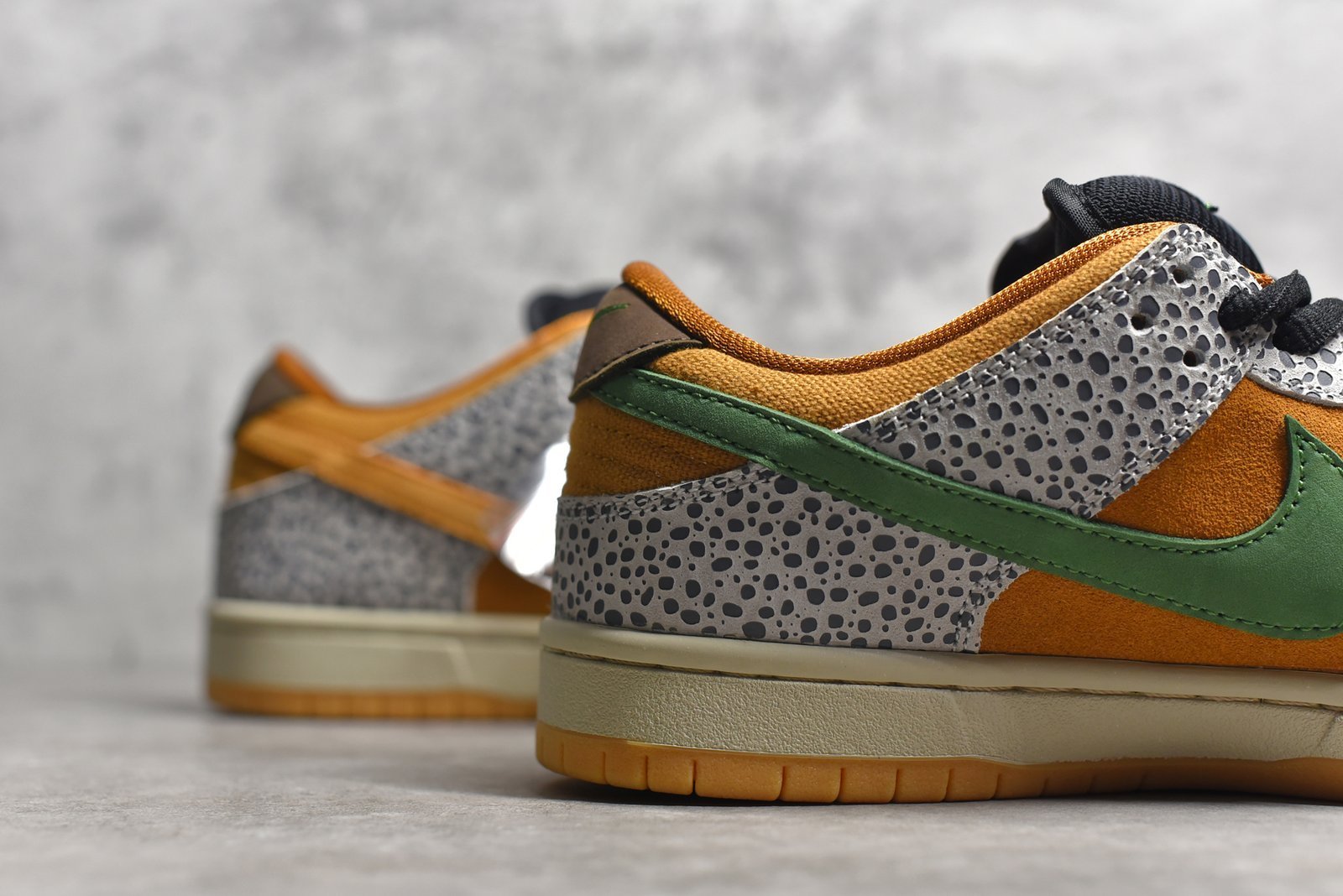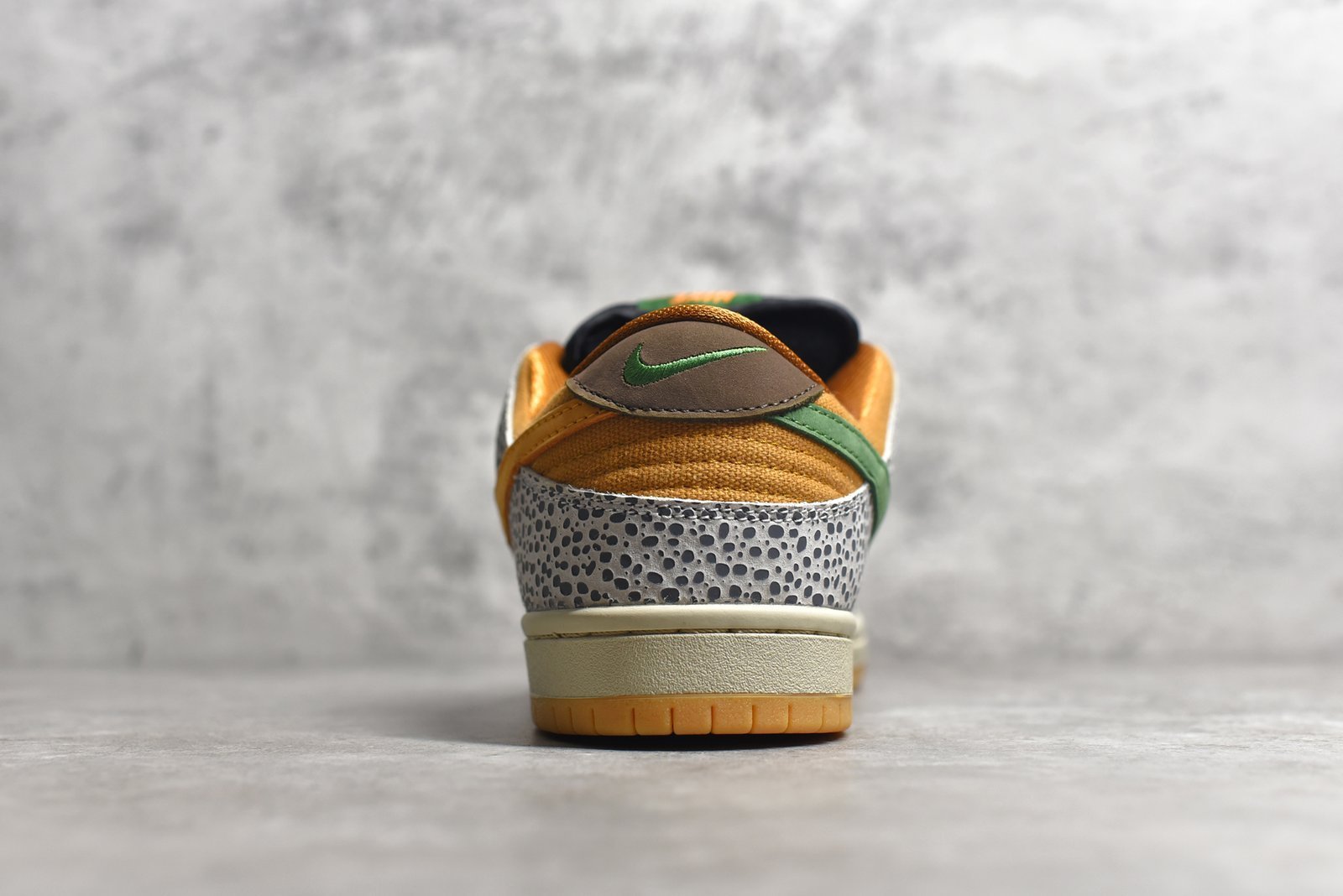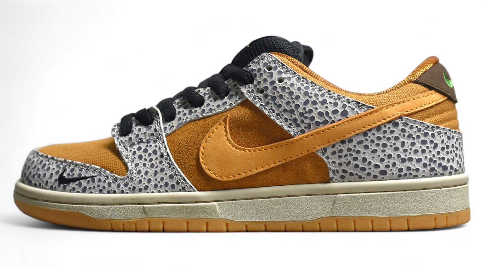 The SB Dunk Low Safari CD2563-002 draws inspiration from the iconic “Safari” print made famous by Nike’s Air Safari and Air Max 1 models. Here are the typical features of this sneaker: