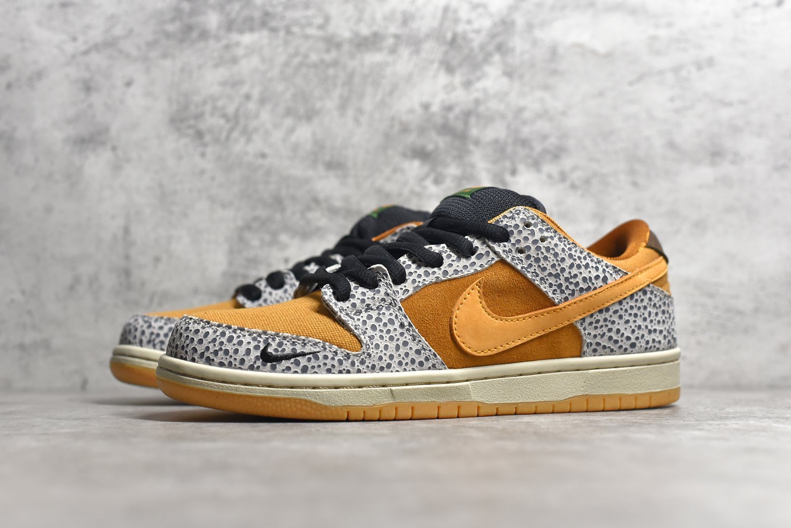 - Design Elements: Safari print overlays on the toe box. eyestay. and heel. providing a unique and eye-catching appearance.