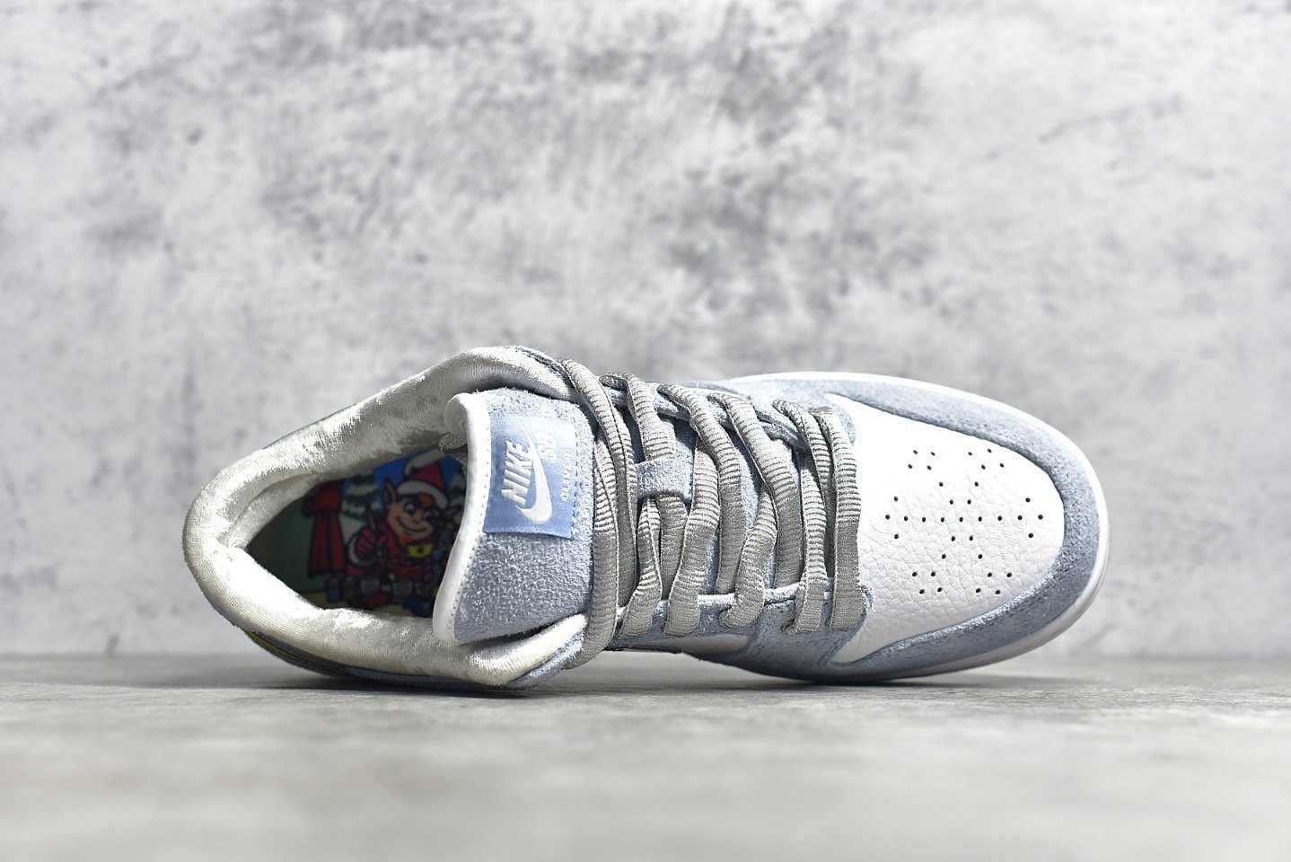 The SB Dunk Low Sean Cliver DC9936-100 is a collaboration between Nike SB and artist Sean Cliver. offering a unique and festive design. Here are the typical features of this shoe: