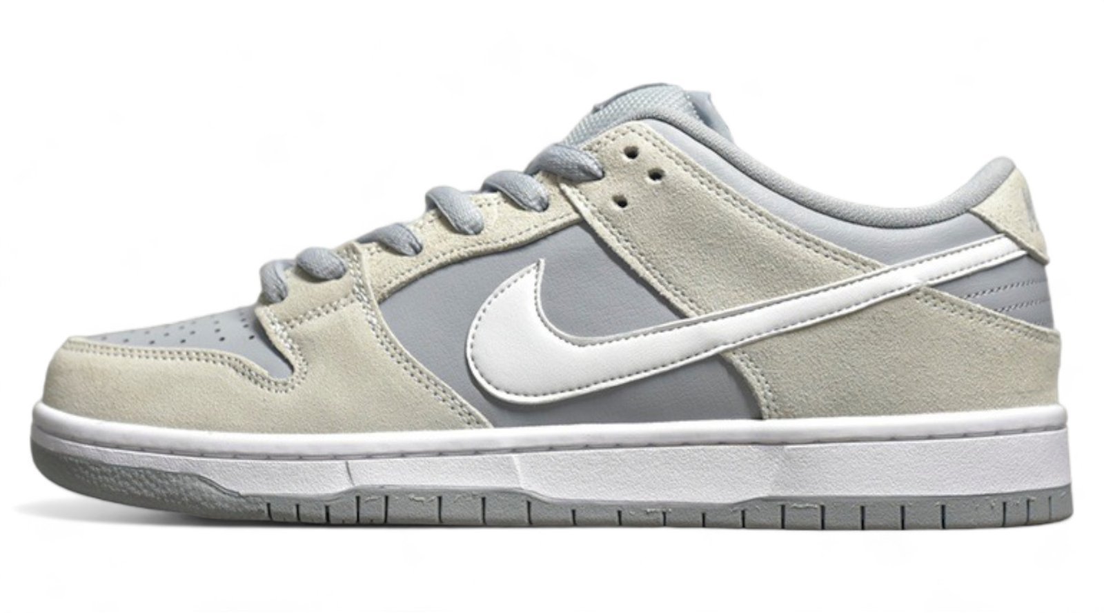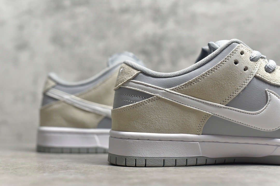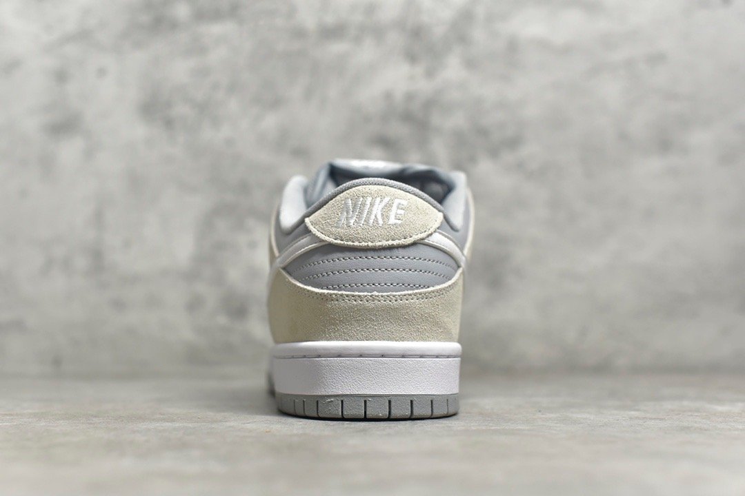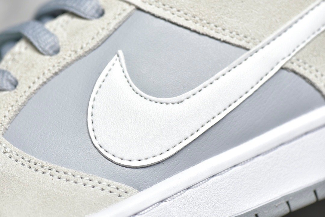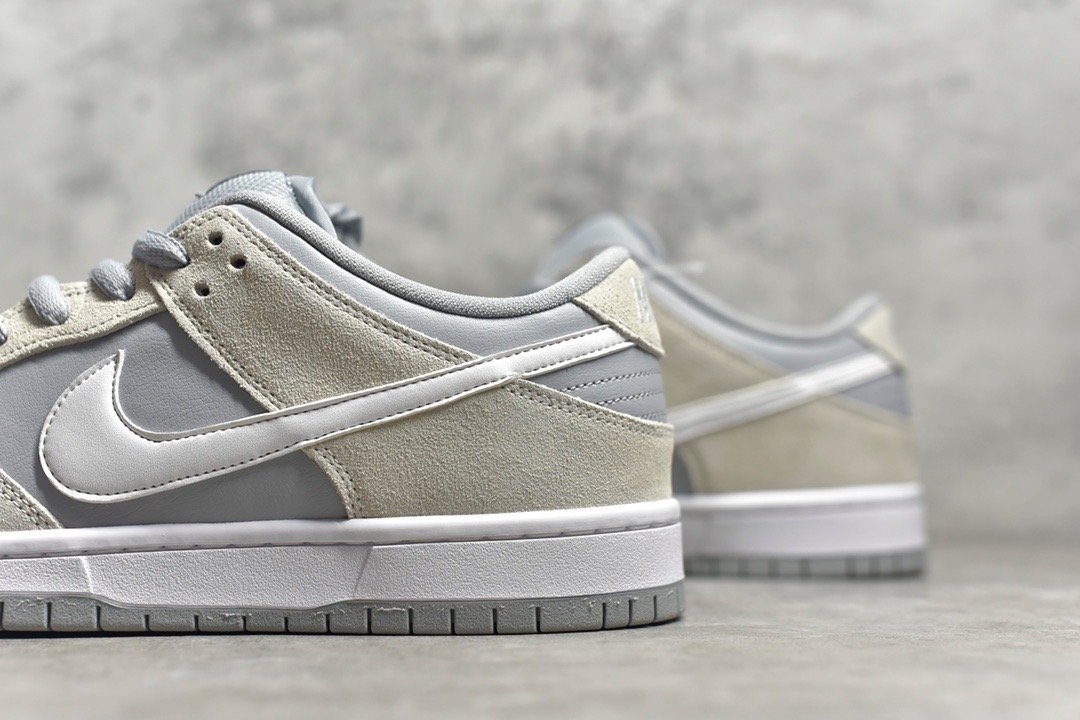The SB Dunk Low Summit White Wolf Grey combines a clean and versatile design with durable materials. comfortable fit. responsive Zoom Air cushioning. and a durable rubber outsole. It’s a perfect choice for everyday wear. offering understated style and comfort.