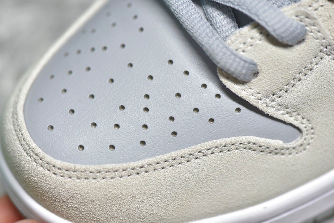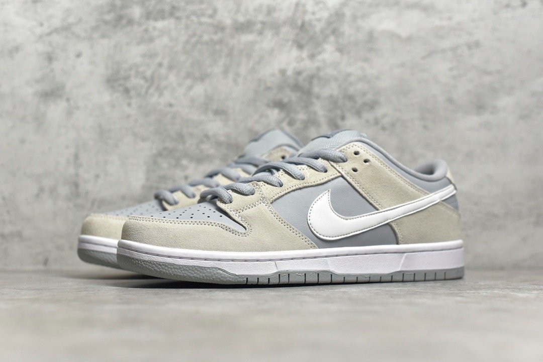 The SB Dunk Low Summit White Wolf Grey is a versatile and clean sneaker that blends simplicity with style. Here are the typical features of this shoe: