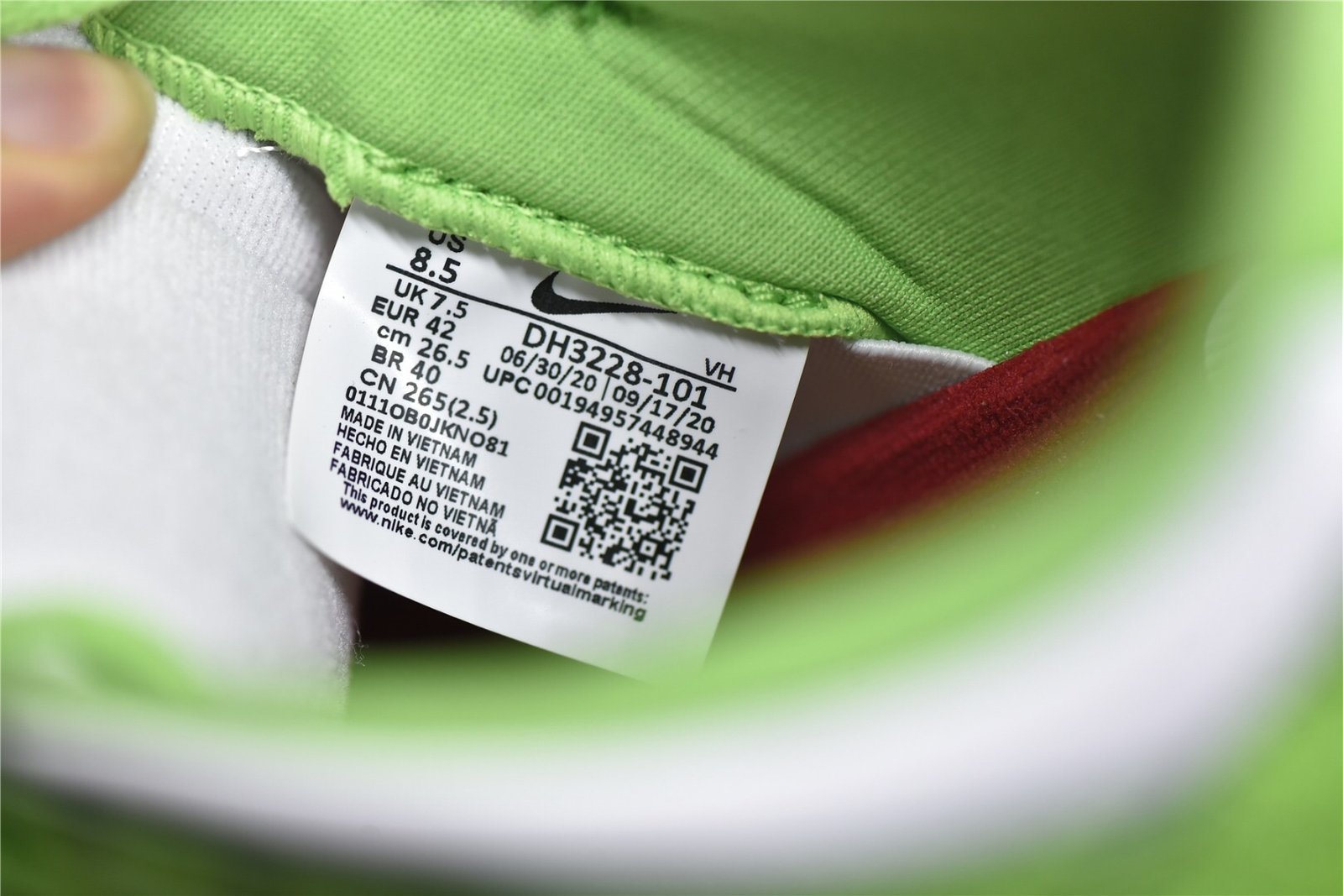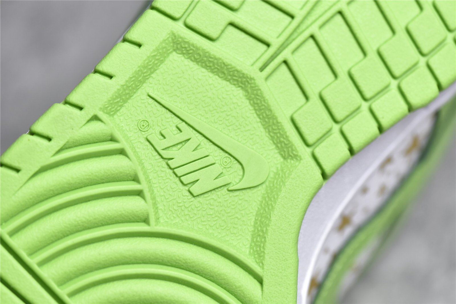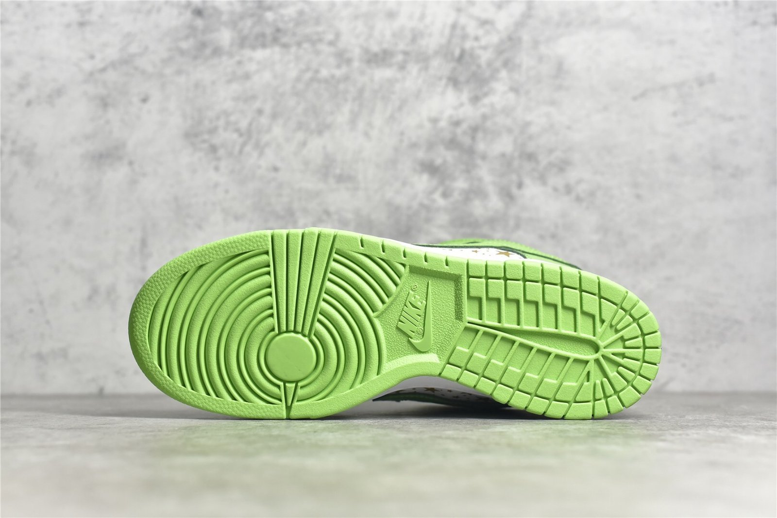 - Design Elements: Features a striking Mean Green base with black overlays. The shoe is adorned with small white stars all over the upper. giving it a unique and playful aesthetic. Supreme branding is subtly incorporated on the tongue tag and insoles. while Nike branding appears on the heel tab.