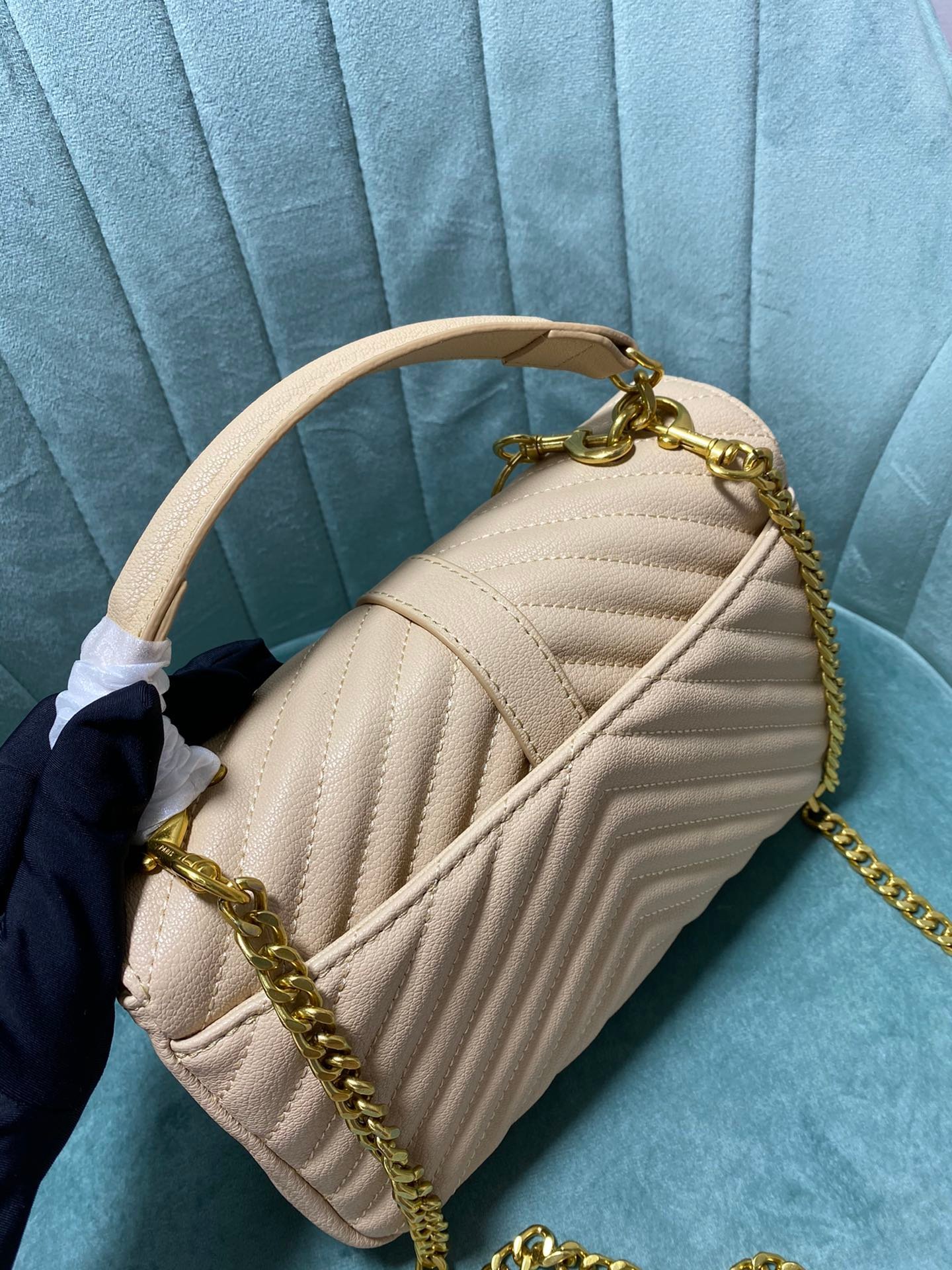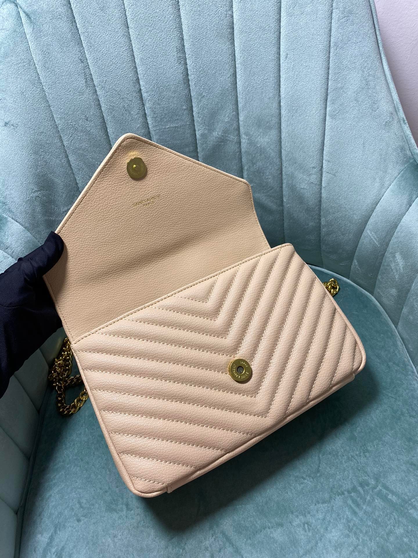 Large-sized cowhide with golden hardware. YSL Saint Laurent. A blockbuster at the counter. Exclusive in the market. European imported original leather. Hand-embroidered V-line. Super smooth. soft and comfortable. The bag shape is exquisite and practical. YSL metal buckle at the bag opening. The hardware is flawless. Exquisite craftsmanship in details. Equipped with an exquisite original pendant. Size: 24*18*8.5cm!